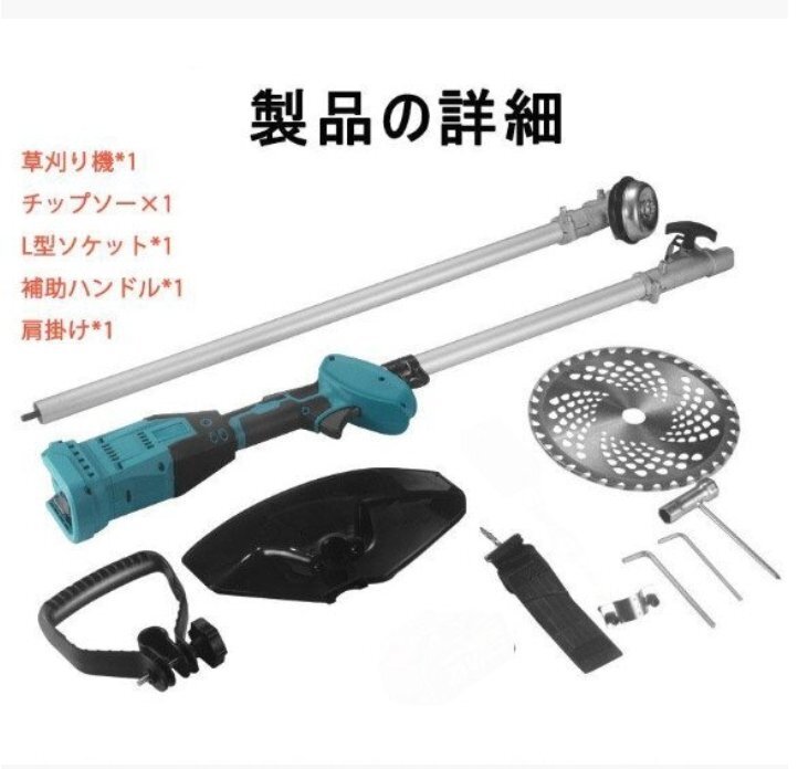 草刈り機*1、 チップソー×1、L型ソケット*1、補助ハンドル*1、肩掛け*1