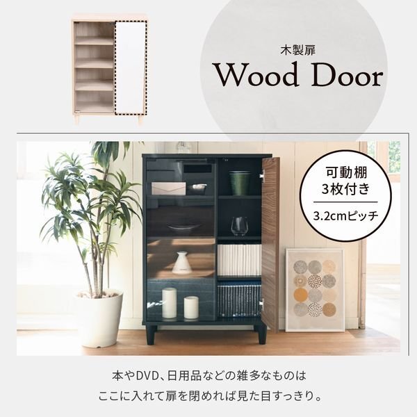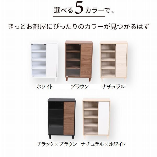 | 【カラー】 ホワイト、ブラウン、ナチュラル、ブラック×ブラウン、ナチュラル×ホワイト 【サイズ】 <外寸> 幅60×奥行29.5×高さ90(アジャスター80.5)cm <内寸> ガラス扉内:幅29×奥行25.5×高さ76cm 木製扉内:幅19(有効23)×奥行25.5×高さ76cm 可動棚大:幅31×奥行25×厚み1.5cm(3.2cmピッチ13穴) 可動棚小:幅22.5×奥行25×厚み1.5cm(3.2cmピッチ13穴) 【材質】 <ホワイト> 本体:プリント紙化粧合板 天板・扉:合成樹脂化粧合板(PVC) 脚:天然木 <ブラウン、ナチュラル> 本体:プリント紙化粧合板 脚:天然木 <ブラック×ブラウン> 本体:プリント紙化粧合板 天板:合成樹脂化粧合板(PVC) 脚:天然木 <ナチュラル×ホワイト> 本体:プリント紙化粧合板 扉:合成樹脂化粧合板(PVC) 脚:天然木 【耐荷重】 天板:(約)10kg以下 可動棚:各(約)5kg以下 扉内固定棚:(約)5kg以下 【生産国】 中国 【梱包】 サイズ:83.5×36.5×20.5cm、重量:18.9kg 【その他】 ・可動棚大3枚、可動棚小3枚 ・背面化粧なし ・脚裏フェルト付き ・アジャスター付き 【組み立て品】 お客様による組み立てが必要です。 【ご注意】 ・サイズ、重量は概算です。 ・商品カラーはご使用のモニターによって実際の明るさや色と異なって見える場合がございます。 |