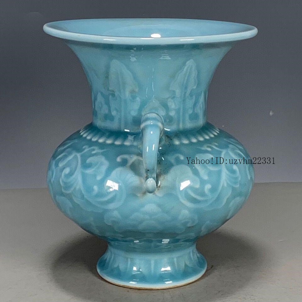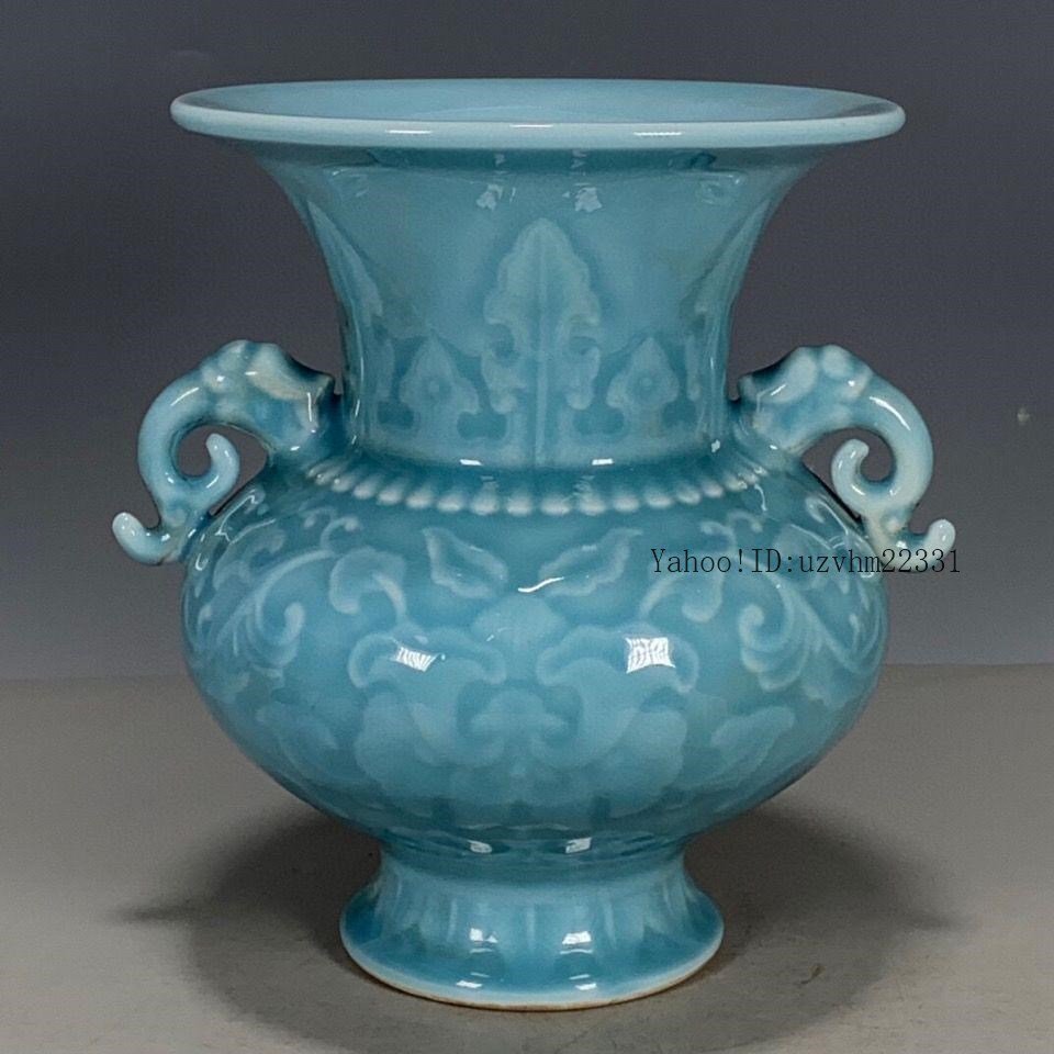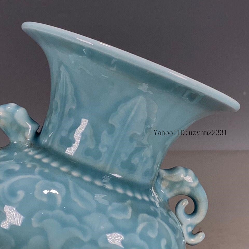 大清乾隆落款題字パステル手描き双耳賞瓶 景徳鎮 現代工芸品美術品 置物
