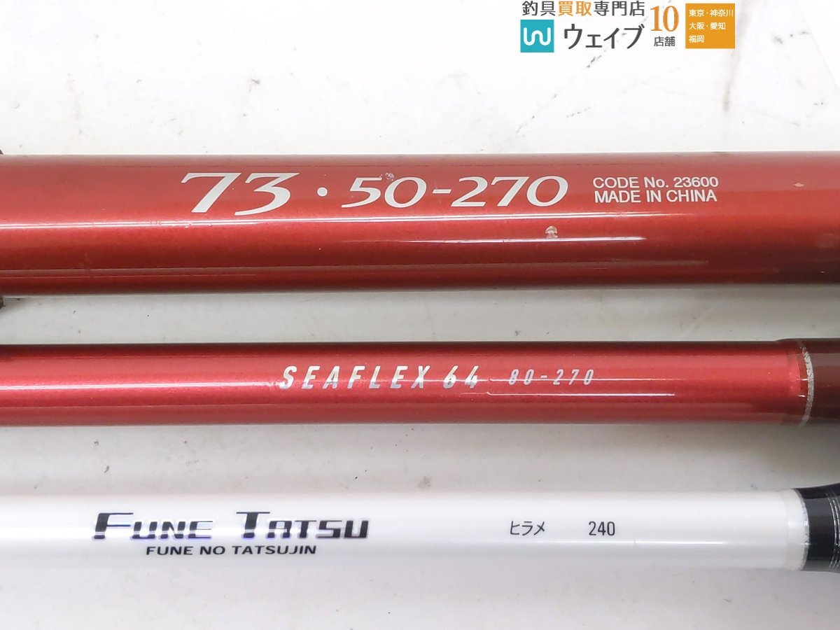 | 商品名 | シマノ シーマティ 73 50-270、ダイワ 13 シーフレックス64 80-270、アルファタックル フネタツ ヒラメ 240 計3点セット |