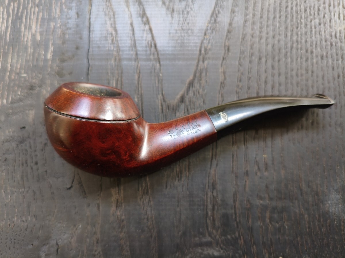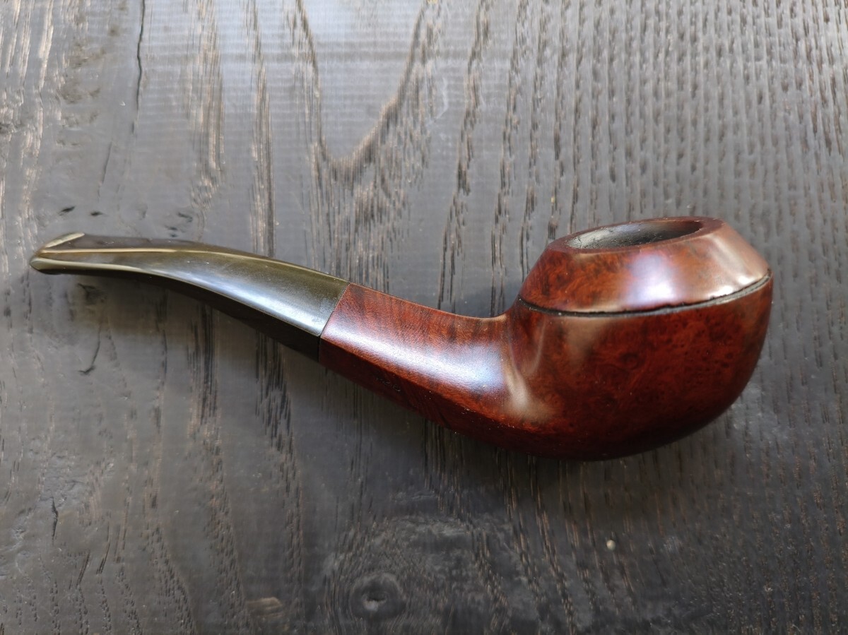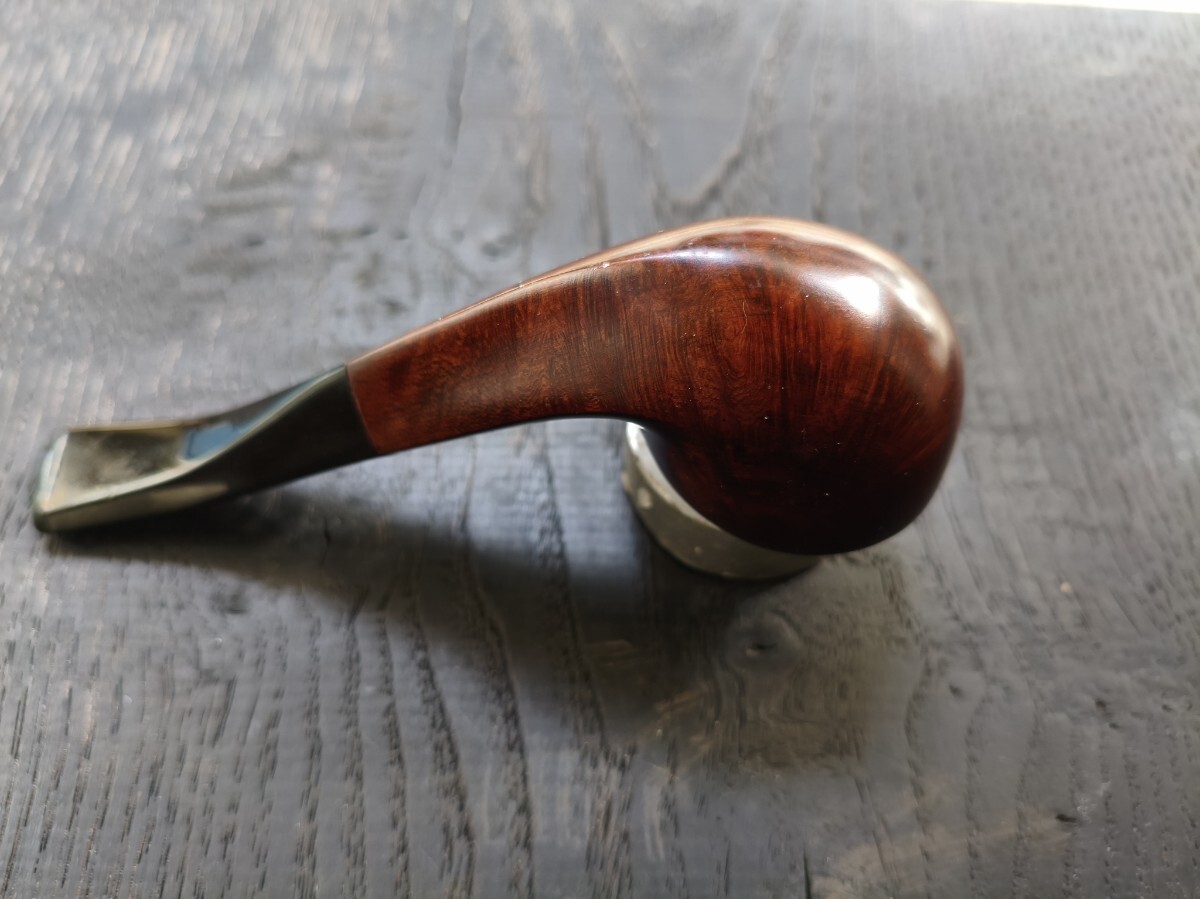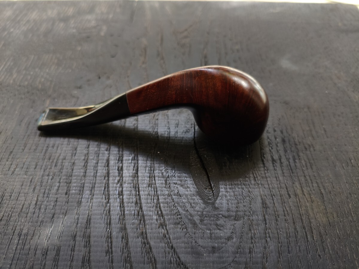 ツゲ「ESTAR.Three stas」ブルドックベントのパイプ。 長さ12.8cm 高さ3.7cm 内部火皿径2cm 火皿深さ2.5cm(高3.7−深2.5=底厚み1.2cm) 漆職人に拭き漆をしてもらってますので、手入れをしなくても画像通り、常時ツヤが保ってます(何十回も塗っては拭き取るの繰り返し=拭き漆です)。写真は全く手入れしていません。 ブルドックベントは、これ1つしか持っておらず、ビリヤードの方が好みなので手放します。 口縁部焼け焦げや、内部焼け焦げによる底薄、カーボン層の厚みによるブライヤーの厚みのごまかしなど一切ありません。 手入れもしておりませんが、使用頻度が少ないのでカーボンもほとんど付いてません。マウスの穴や噛み跡はなく、写真のように薄いキズ程度。これもヤスリで擦って見栄えを整えたりしておりません。 使用葉。マイミクスチャー。ブルーノート。 詰め込める葉の量。ダンヒルのサイズ③サイズ位 よろしくお願いします。