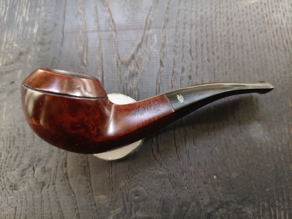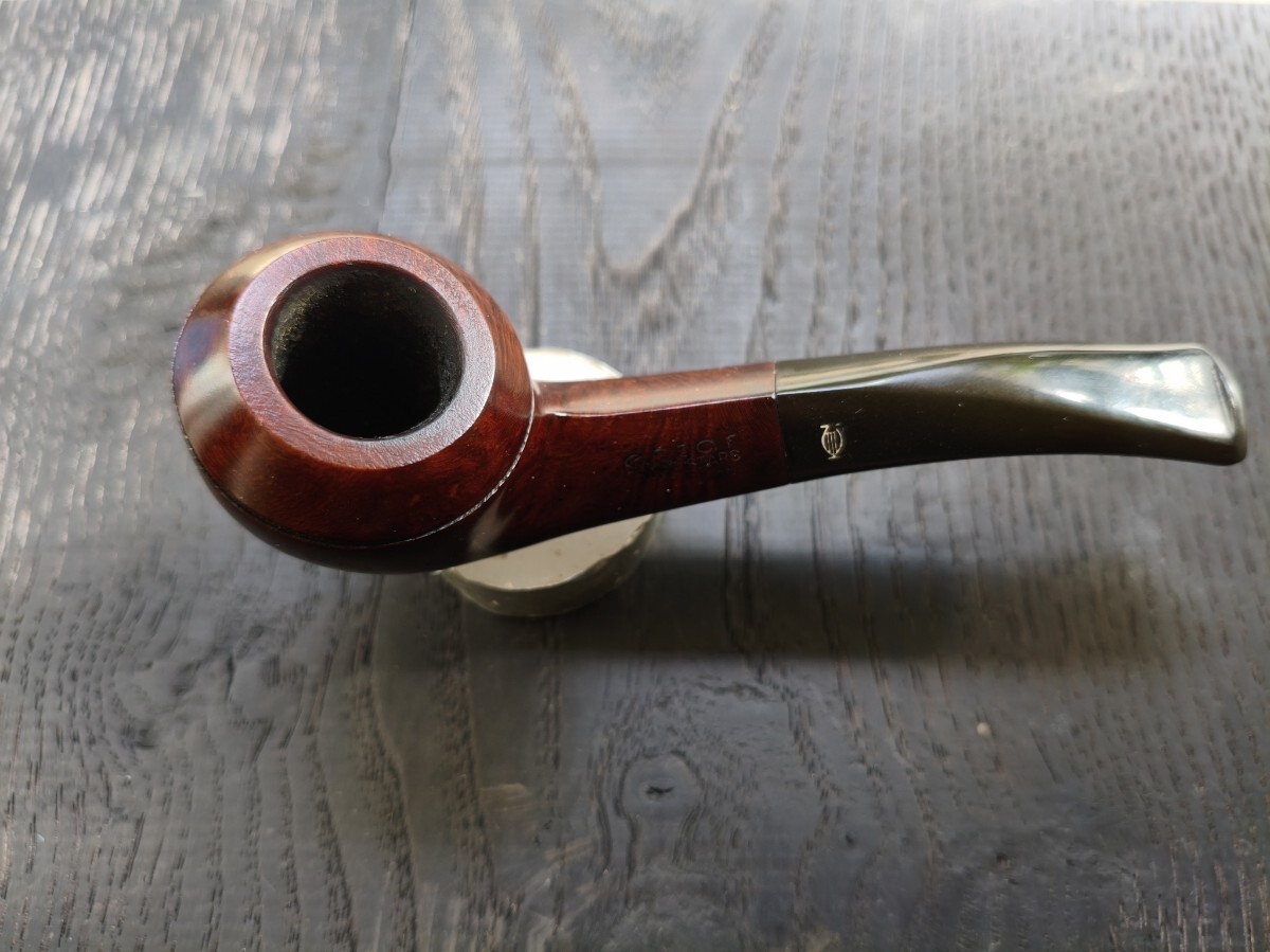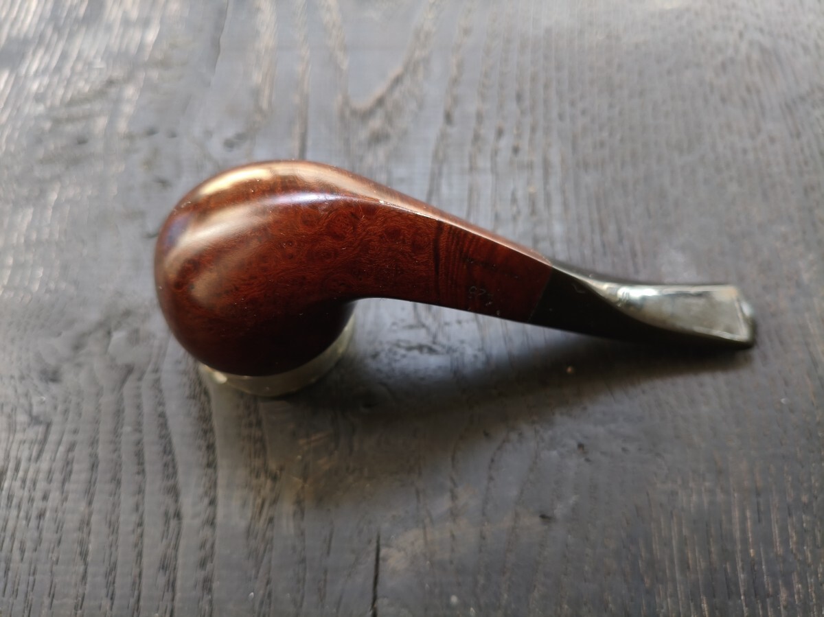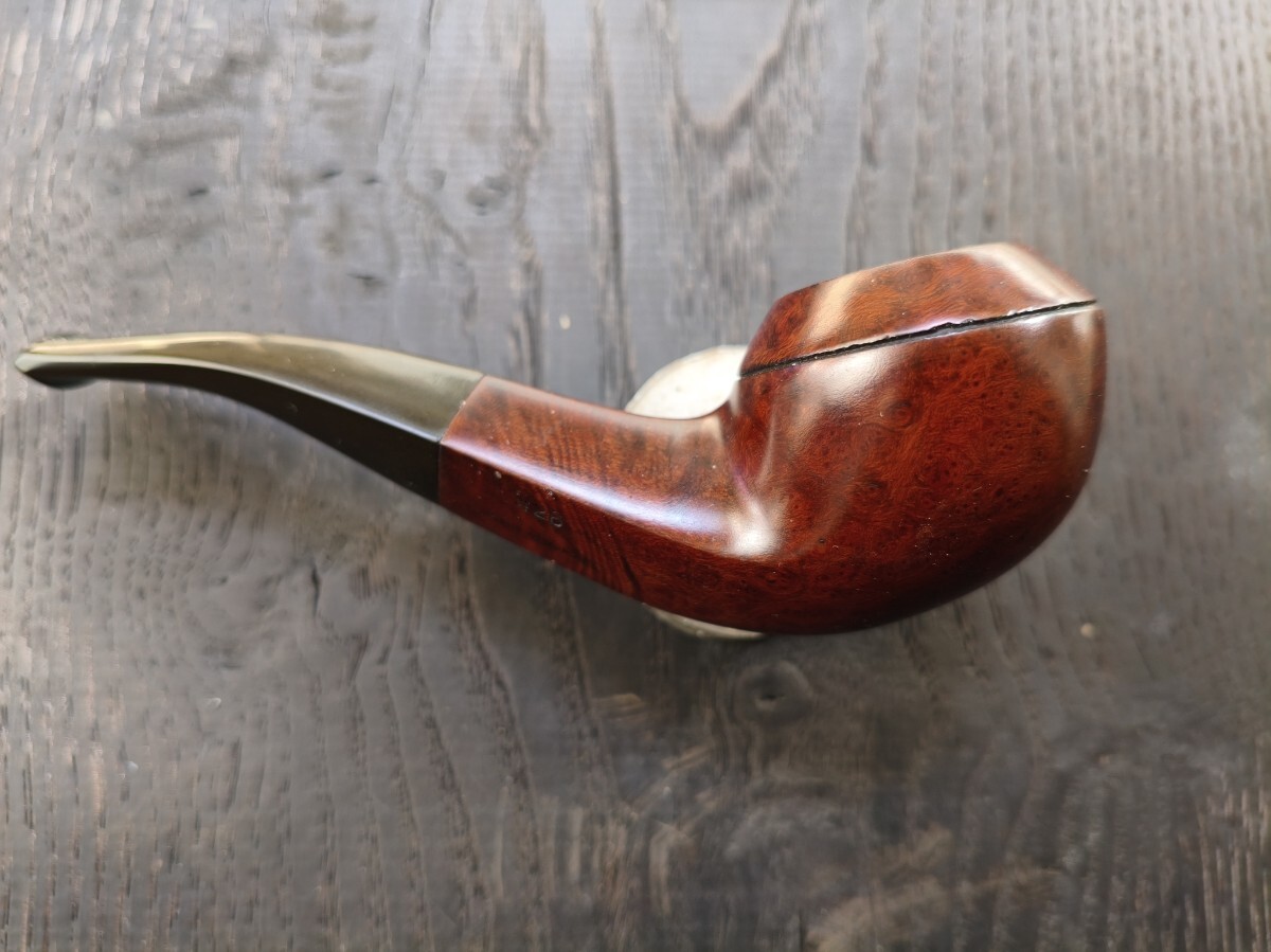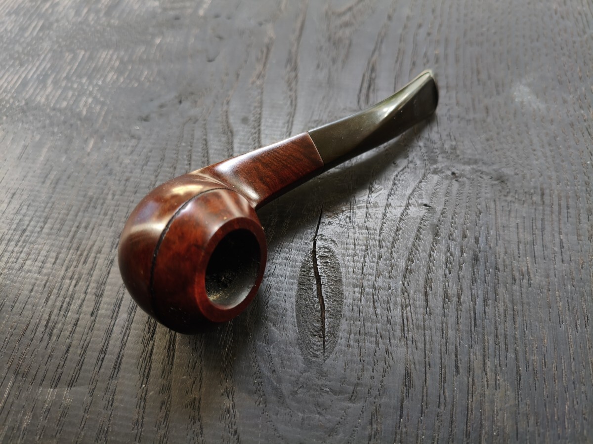 ツゲ「ESTAR.Three stas」ブルドックベントのパイプ。 長さ12.8cm 高さ3.7cm 内部火皿径2cm 火皿深さ2.5cm(高3.7−深2.5=底厚み1.2cm) 漆職人に拭き漆をしてもらってますので、手入れをしなくても画像通り、常時ツヤが保ってます(何十回も塗っては拭き取るの繰り返し=拭き漆です)。写真は全く手入れしていません。 ブルドックベントは、これ1つしか持っておらず、ビリヤードの方が好みなので手放します。 口縁部焼け焦げや、内部焼け焦げによる底薄、カーボン層の厚みによるブライヤーの厚みのごまかしなど一切ありません。 手入れもしておりませんが、使用頻度が少ないのでカーボンもほとんど付いてません。マウスの穴や噛み跡はなく、写真のように薄いキズ程度。これもヤスリで擦って見栄えを整えたりしておりません。 使用葉。マイミクスチャー。ブルーノート。 詰め込める葉の量。ダンヒルのサイズ③サイズ位 よろしくお願いします。