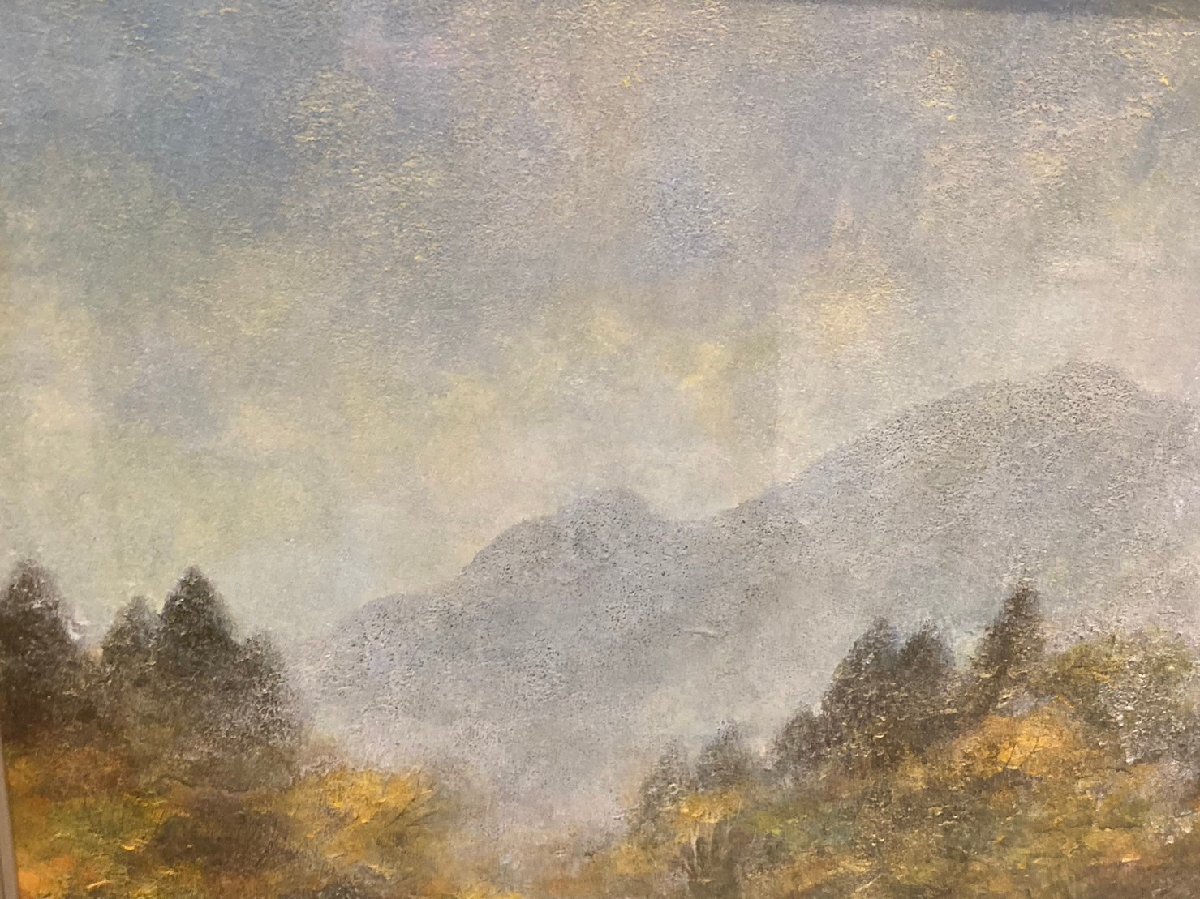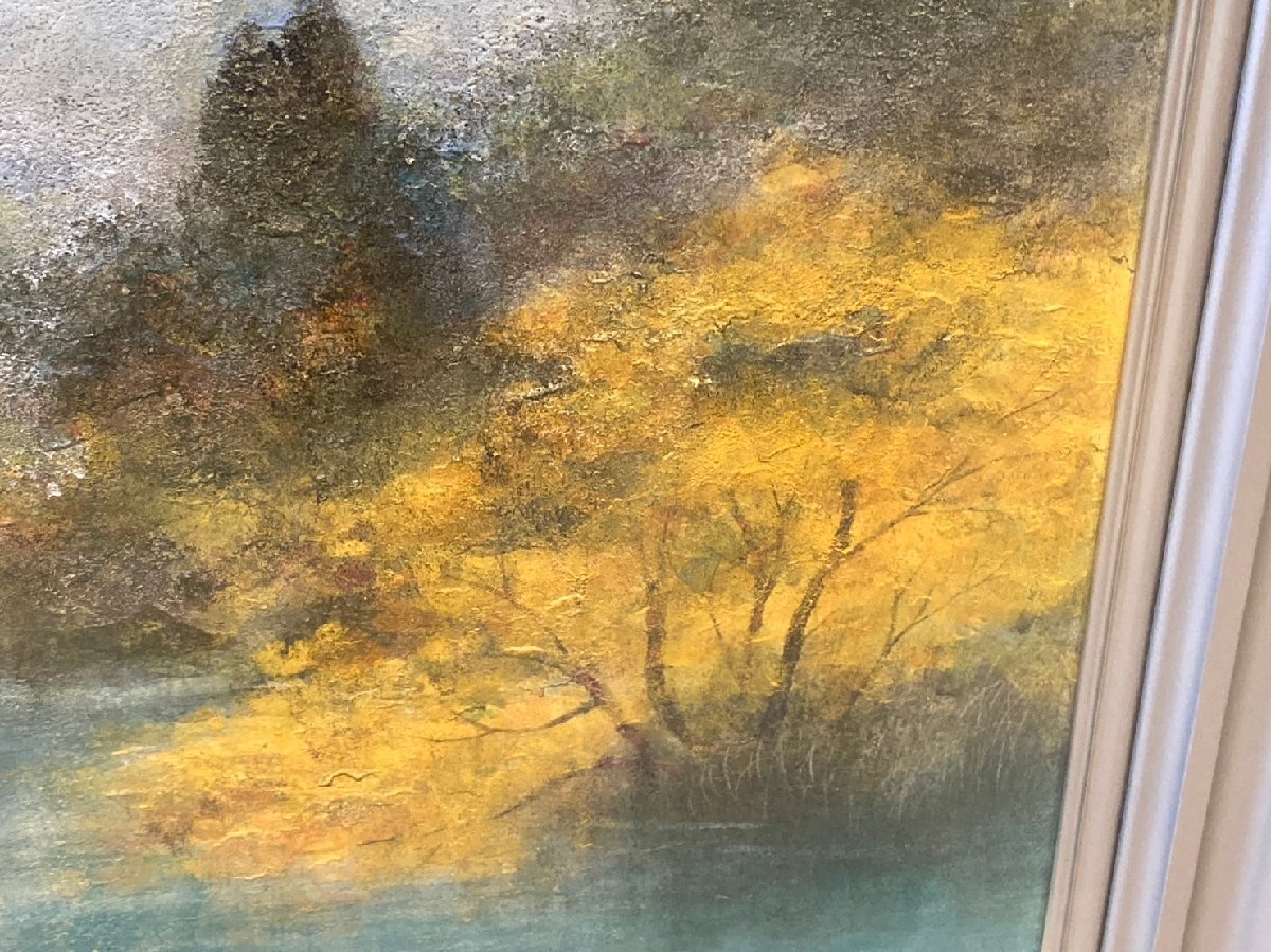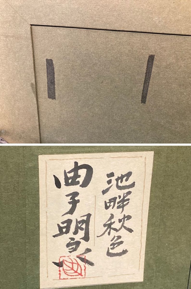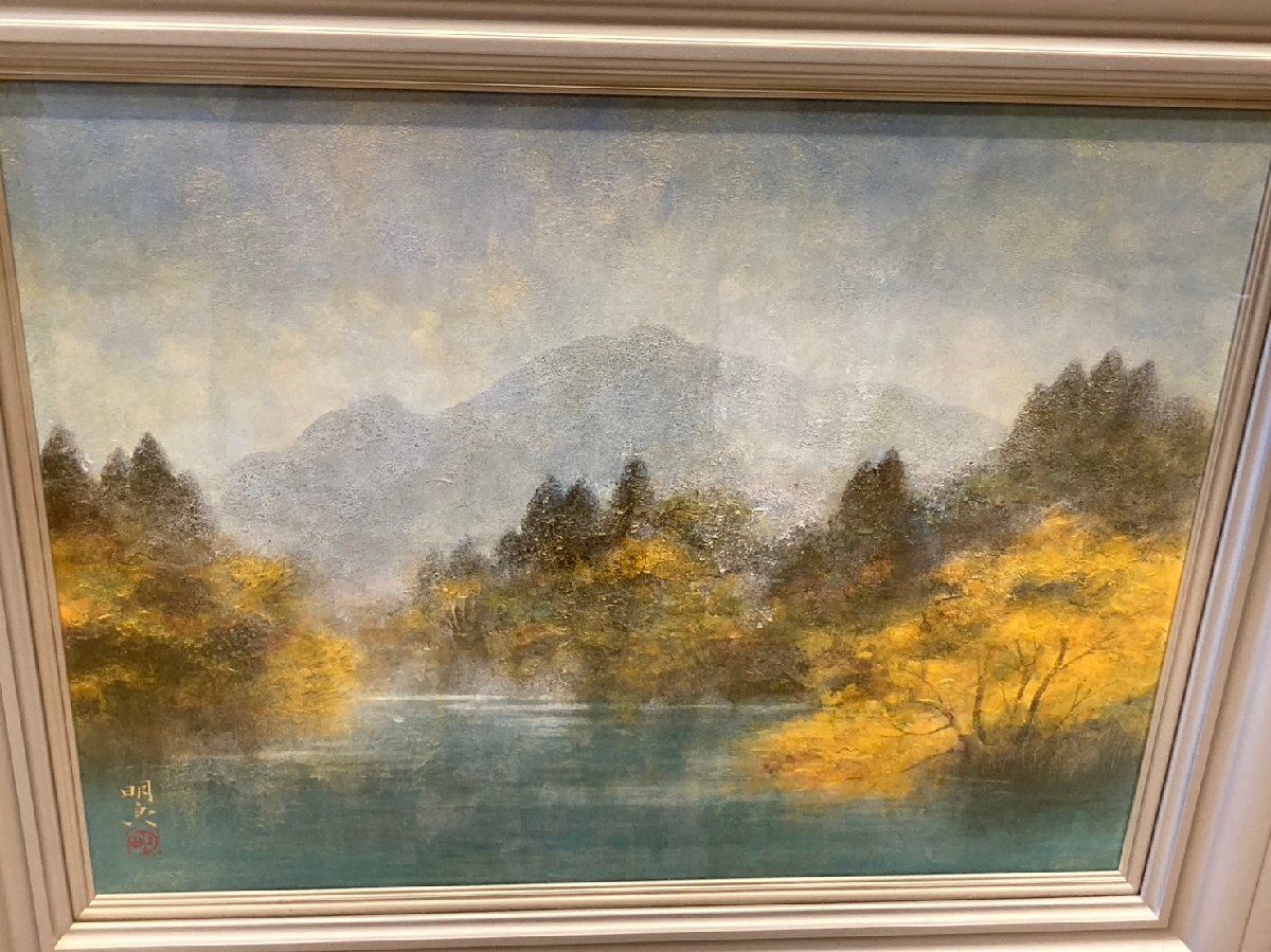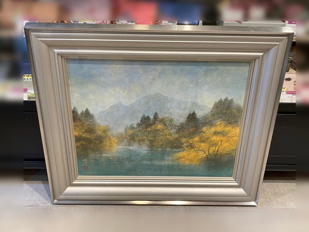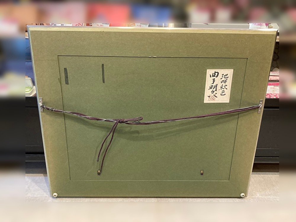◆【引取歓迎!長野県諏訪市】曲子明良 絵画 池畔秋色 額付き 風景画 中古◆10522★