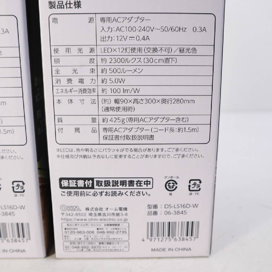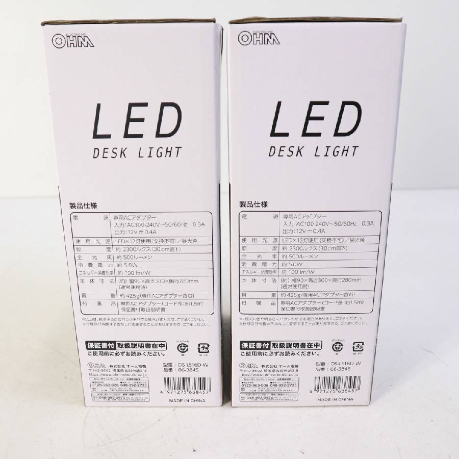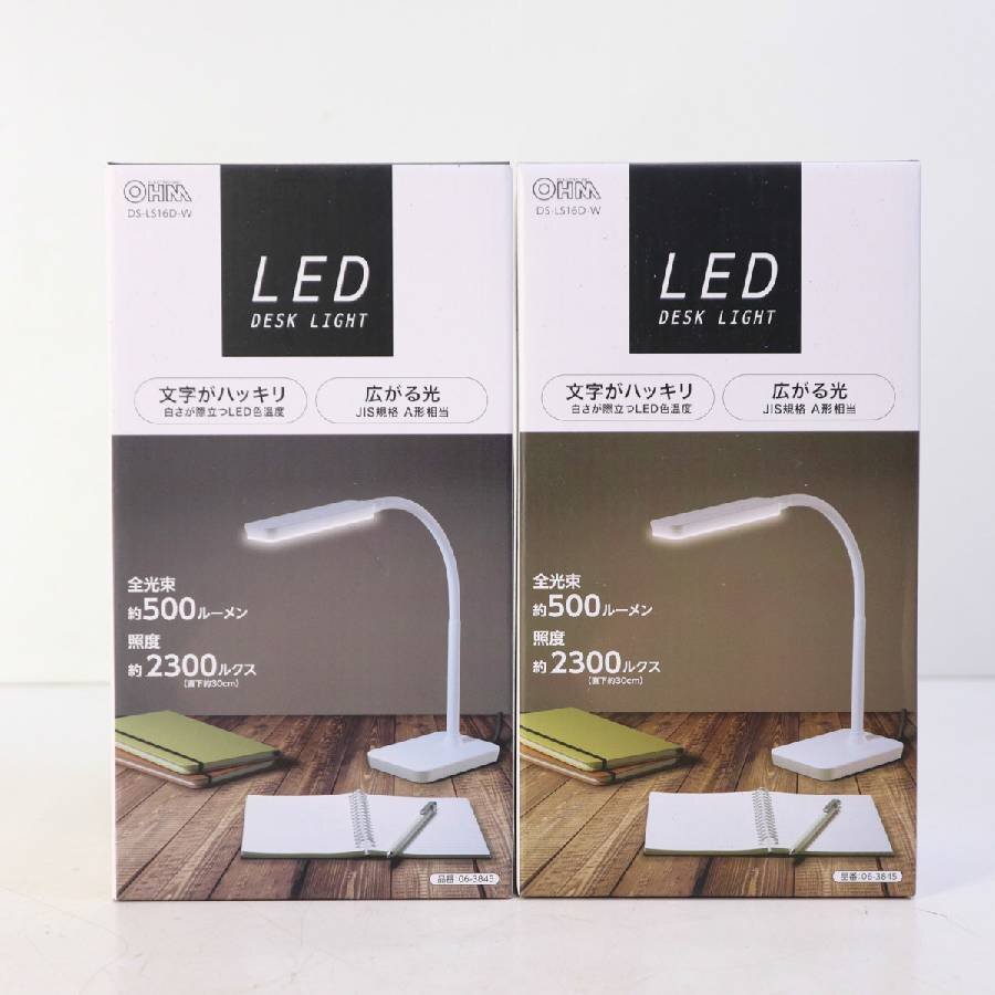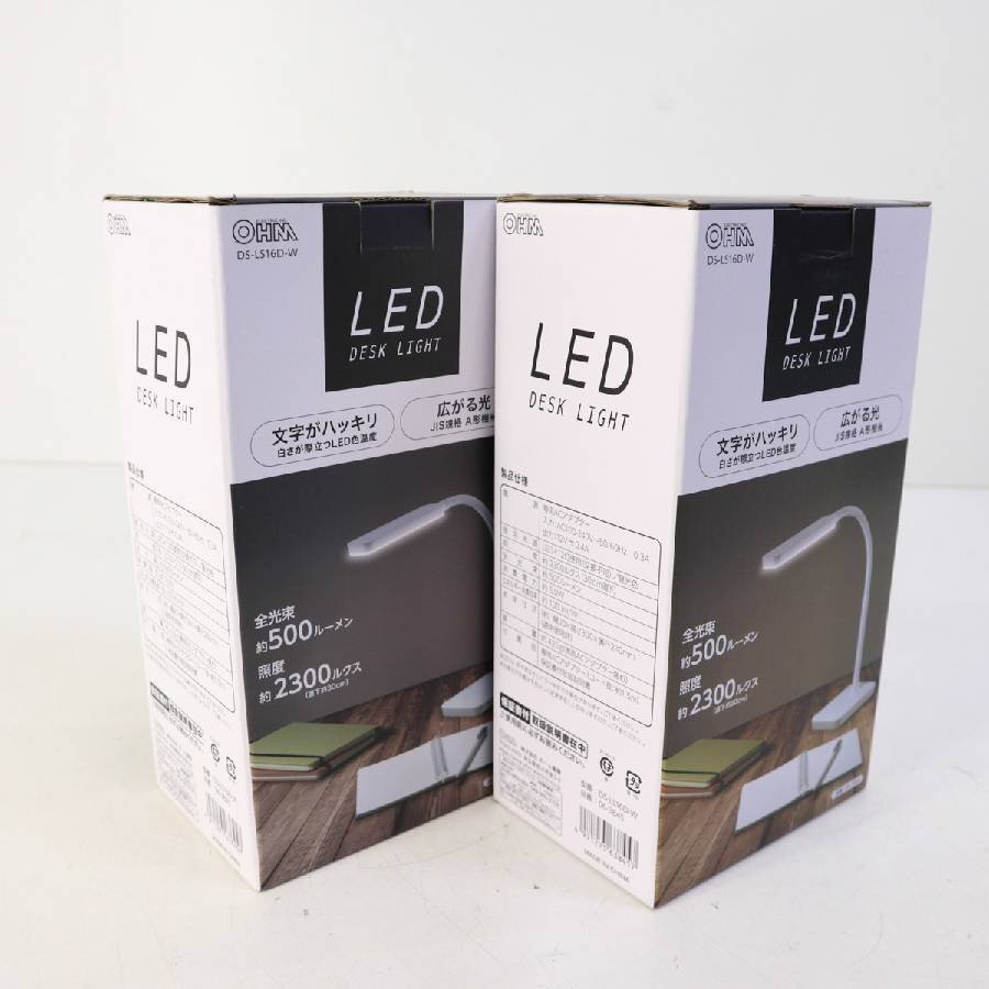【2個セット】 OHM オーム電機 LEDデスクライト A形相当 昼光色 500ルーメン タッチ式 学習用照明 DS-LS16D-W ★309v18