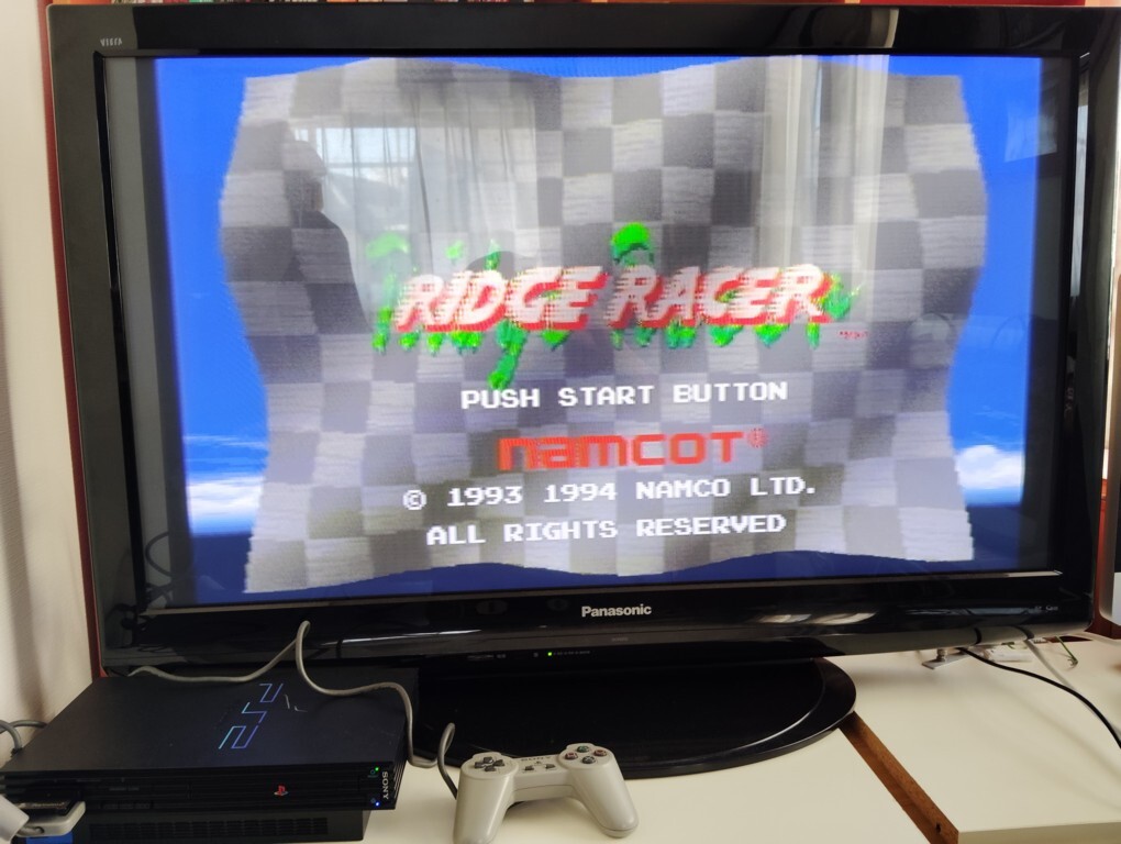 PS2本体電源入りました★フルHDプラズマテレビでリッジレーサーの動作確認出来ました