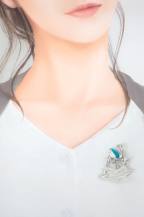 コメント1羽の鳥が魚を捕る様子を描いた、ダイヤモンドが煌めくユニークな雰囲気のブローチです。水しぶきをうるうるとしたシェルで大胆に表現しており、今にも動き出しそうな躍動感のあるお品です。