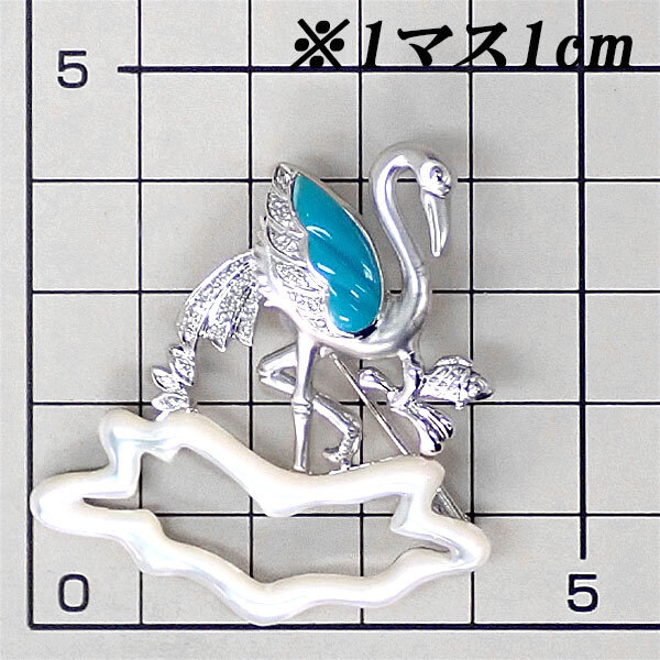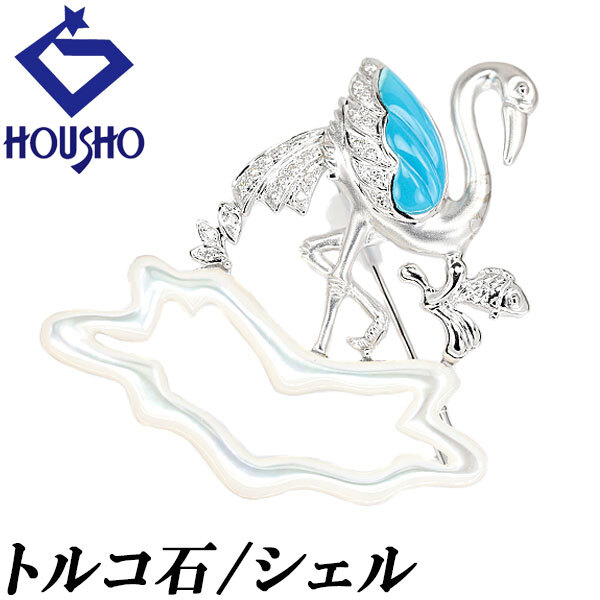 商品名 トルコ石 ブローチ ダイヤモンド シェル K18ホワイトゴールド 鳥 バード 動物 アニマル 梨地 マット ツヤ消し 透かし