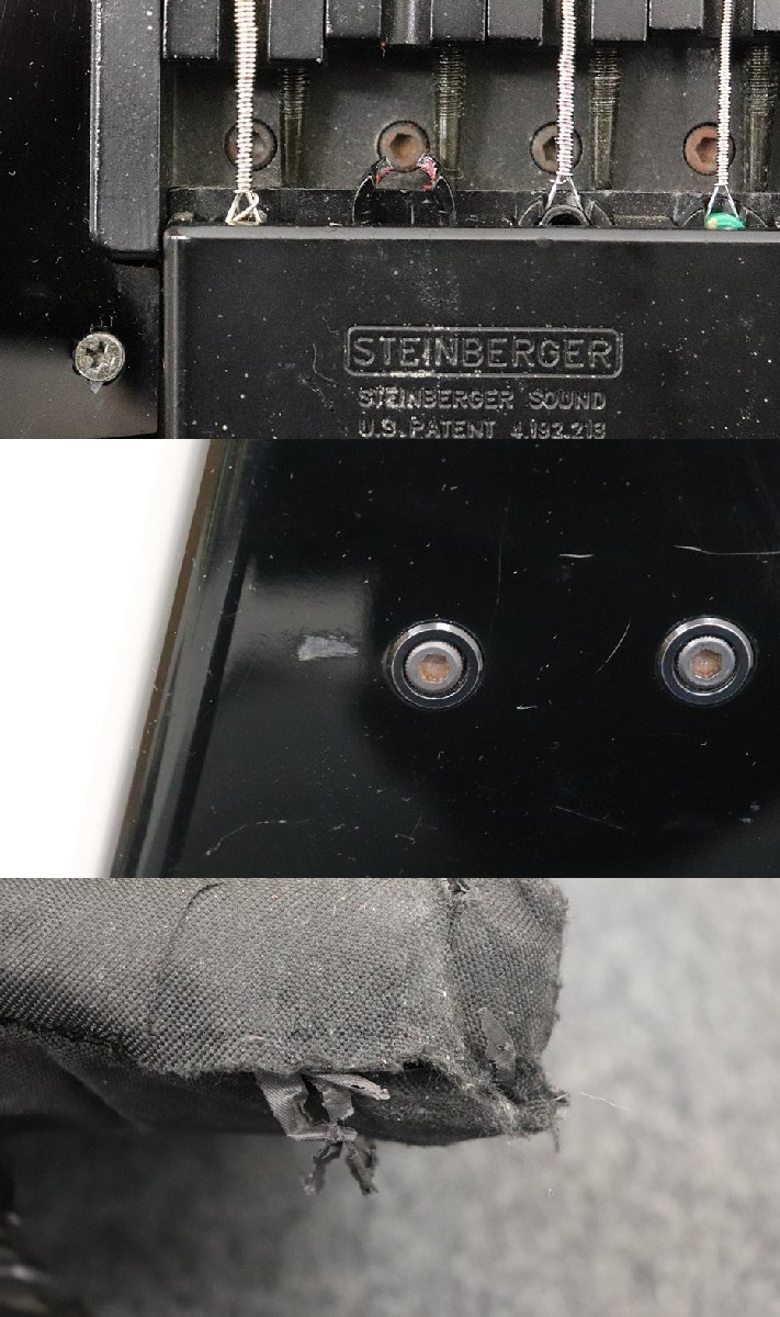 | ◆外観◆ ・★キズ、汚れ、使用感があります。 ・★3弦のポールエンドの留め具が破損している為、弦が張れません。 ・★各所擦り傷が見受けられます。 ・★ケースに破れがあります。 |