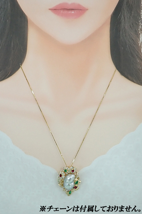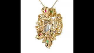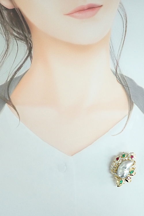 コメント草花に抱かれた唯一無二の造形をした白蝶パールに自然の美しさを感じる、エレガントなペンダントブローチです。色鮮やかなルビーやエメラルドがダイヤモンドと共に煌めき、ラグジュアリーな印象を醸し出します。