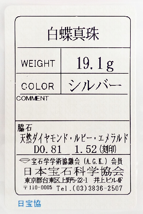 白蝶真珠(南洋真珠)色:ピンクを帯びたグレーホワイト