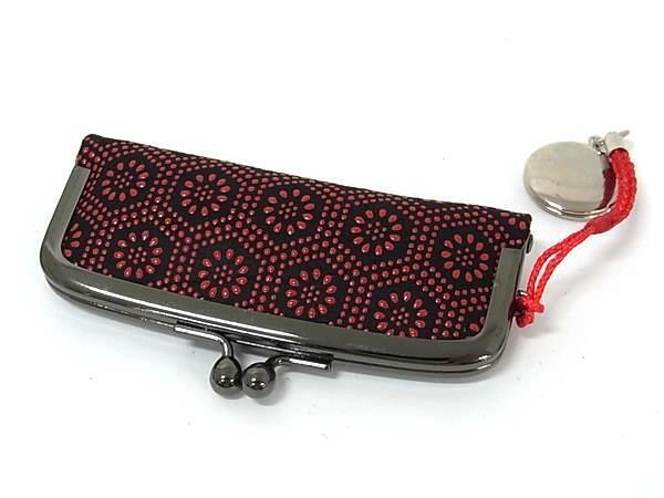 ■極美品■ INDEN-YA 印傳屋 インデンヤ 漆塗り 亀甲柄 鹿革 がま口 印鑑ケース リップケース ブラック系×レッド系 DK3018