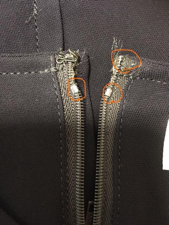 ファスナーですが、1センチ強のところにファスナー止めがあり1番上まで上がりません。