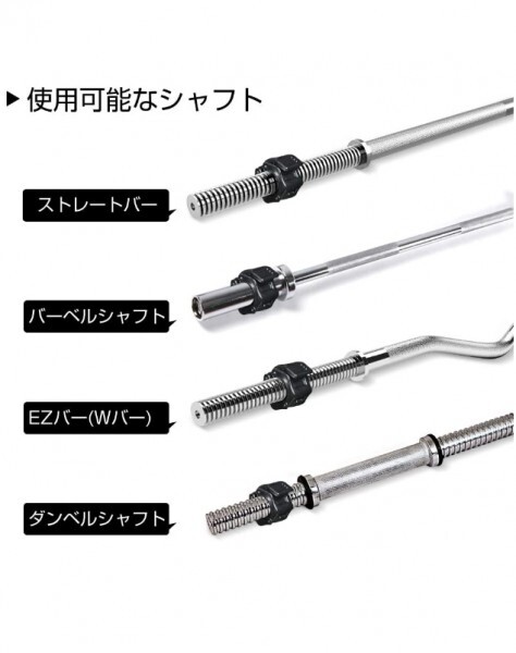 【多種対応】ストレートバー、EZバー(Wバー)、バーベルシャフト、ダンベルにも対応。