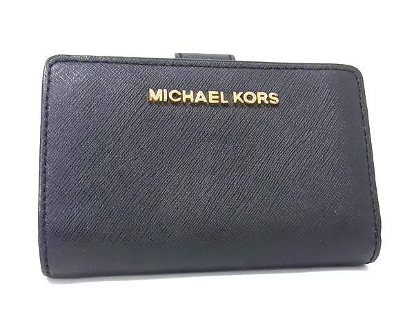 ■美品■ MICHAEL KORS マイケルコース レザー 二つ折り 財布 ウォレット 札入れ 小銭入れ カード入れ レディース ブラック系 DI6909