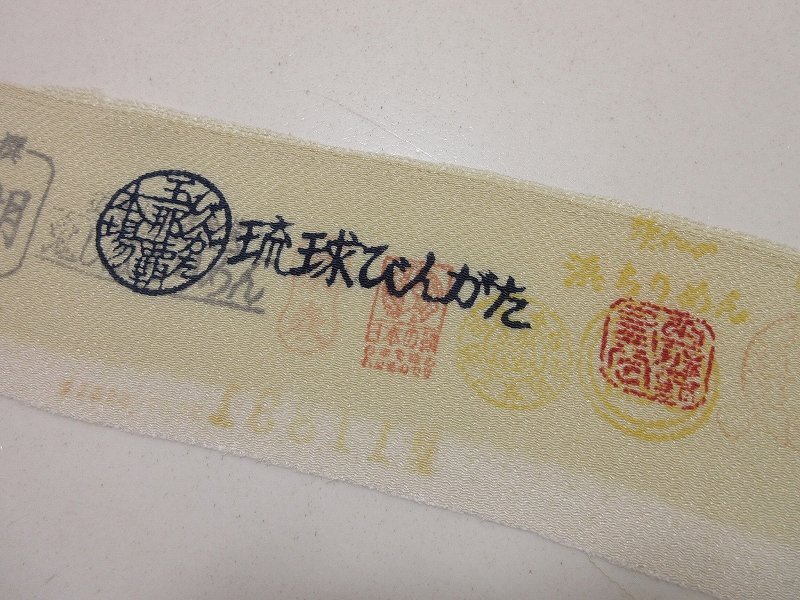 同日出品のお品(タイトルに☆)は同じ方からお譲り頂いたもので、 殆どのものをむら田さん等で誂えたとのことで大変趣向の良いお品です。 玉那覇有公本場琉球紅型九寸名古屋帯です。 大変加工が良く上質の逸品です。 お安く出品致しますので、この機会にいかがでしょうか。 |