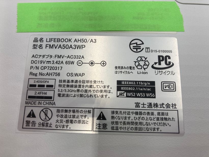 【記憶媒体無】FUJITSU/ノート/第6世代Core i7/メモリ4GB/WEBカメラ有/OS無/Intel Corporation HD Graphics 530 64MB/ドライブDVD-R