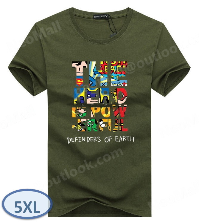 夏にピッタリ ☆ 丸首 半袖 Tシャツ【068】 グリーン 5XLサイズ トップス シャツ シンプル イラスト プリント 春夏