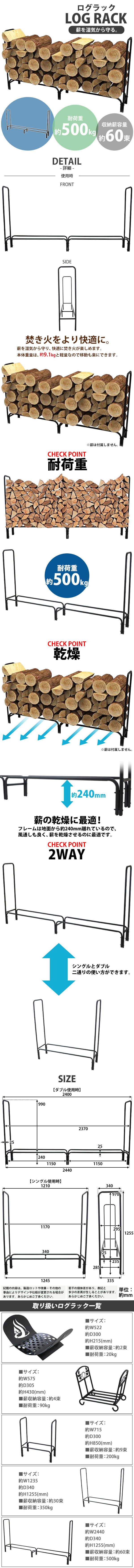 | 商品名 | 送料無料 ログラック 薪ラック 耐荷重約500kg 収納薪容量約60束 軽量 大容量 ログホルダー 焚き火 焚き木 薪 薪置き 薪棚 薪ストッカー 薪収納 焚火 収納 保管 アウトドア バーベキュー BBQ 薪ストーブ ストーブ関連用品 暖炉 lograckh8 |