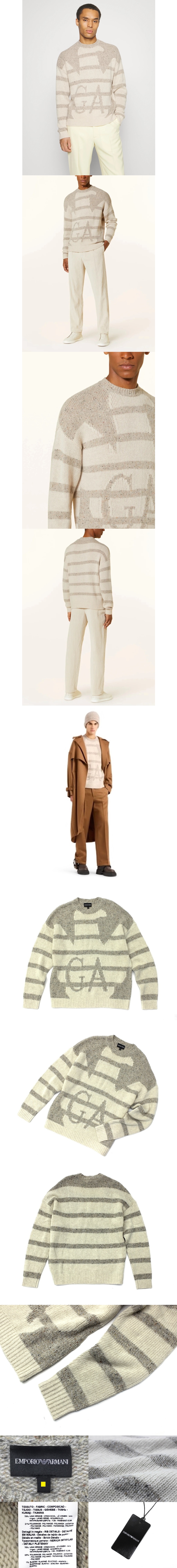 9万新品◆XL◆EMPORIO ARMANI アルマーニ◆ウール混紡インターシャモチーフ イーグル柄クルーネックニットセーター 薄茶ベージュ