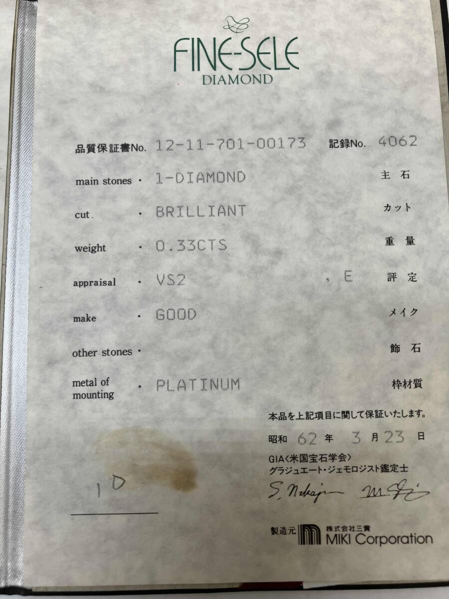 | カラット数:0.33ct リングサイズ:約 9号 総重量:約 4.8g サイズ表記(~cm位)は目安です。ブランドやデザインによって多少前後する場合がございます。予めご了承の上ご注文ください。 ![]() | ||||||