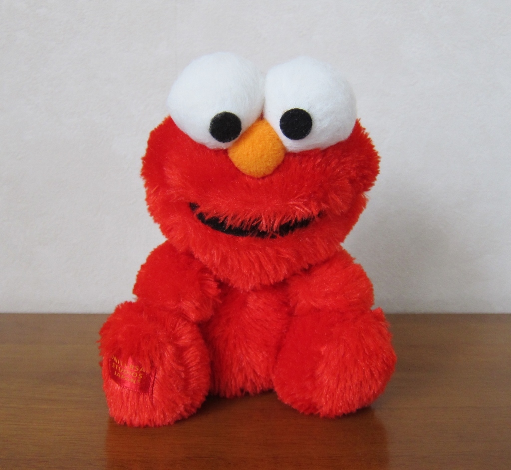 一緒に写っている小さなサイズのエルモは、10年程前にユニバーサルスタジオで購入したものです。