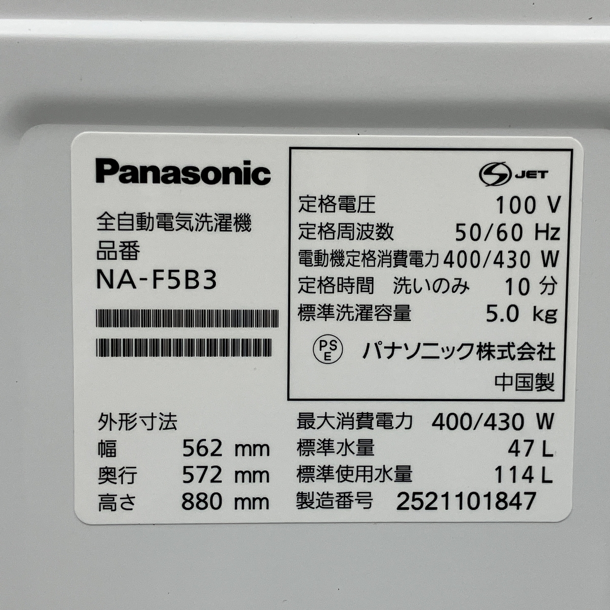 | メーカー名 | Panasonic | 型番 | NA-F5B3 |
