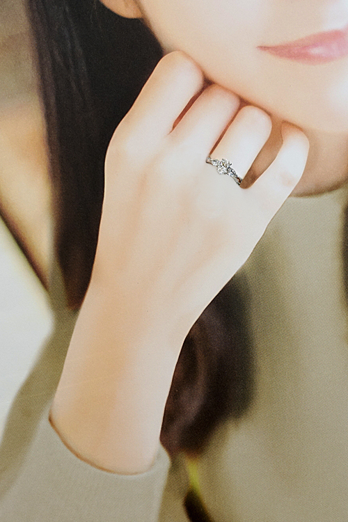 コメントグラフの、上質なオーバルカットのダイヤモンドが眩く輝く、ロマンティックなリングです。サイドのペアシェイプカットのダイヤモンドが、繊細でやさしい輝きをもたらします。