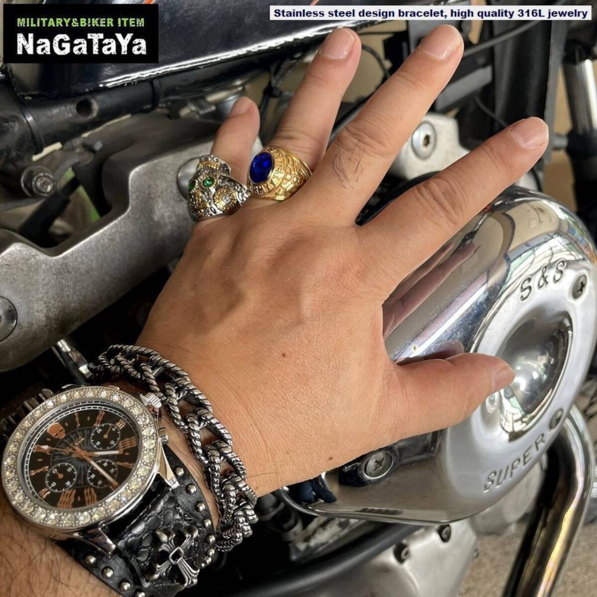 ★ ステンレス デザインブレスレット ハイクオリティ 316L BIKERジュエリー HQSB-010 メンズ アクセサリー ★