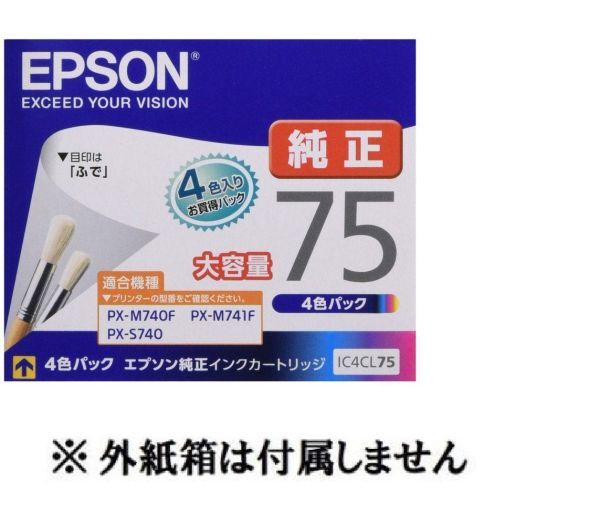 EPSON 純正インク IC4CL75 4色セット (目印:ふで)PX-M740F PX-M740FC6 PX-M740FC7 PX-M740FC8 対応 純正外紙箱なし アウトレット