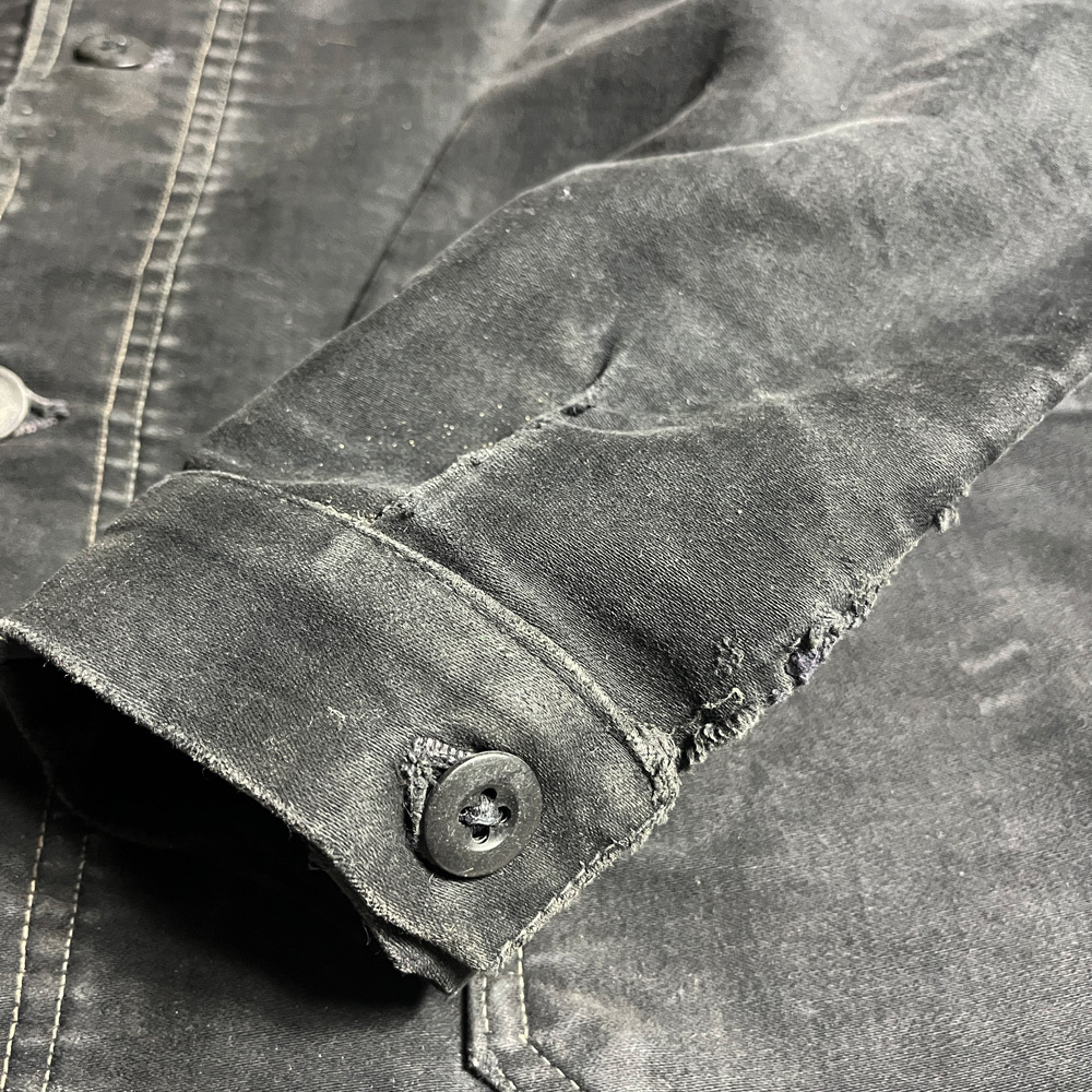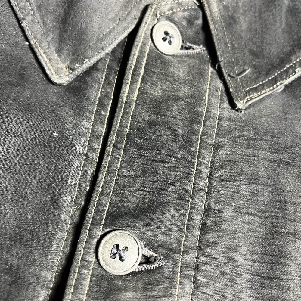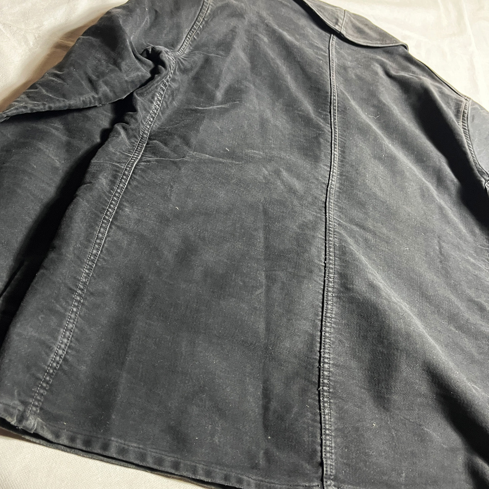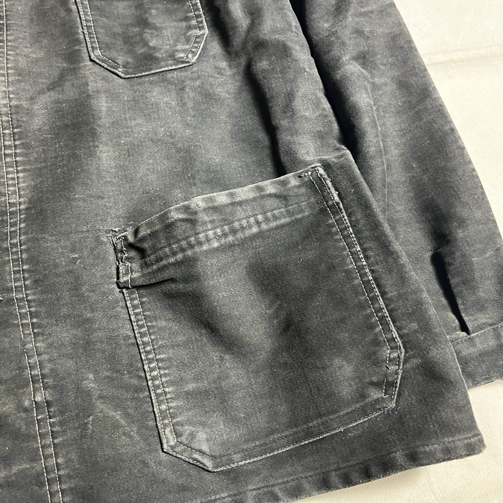 がっしりとした質感のブラックモールスキンジャケット!推定40年代頃の物と思われる、フレンチブラックモールスキンチョアジャケットが入荷して参りました。