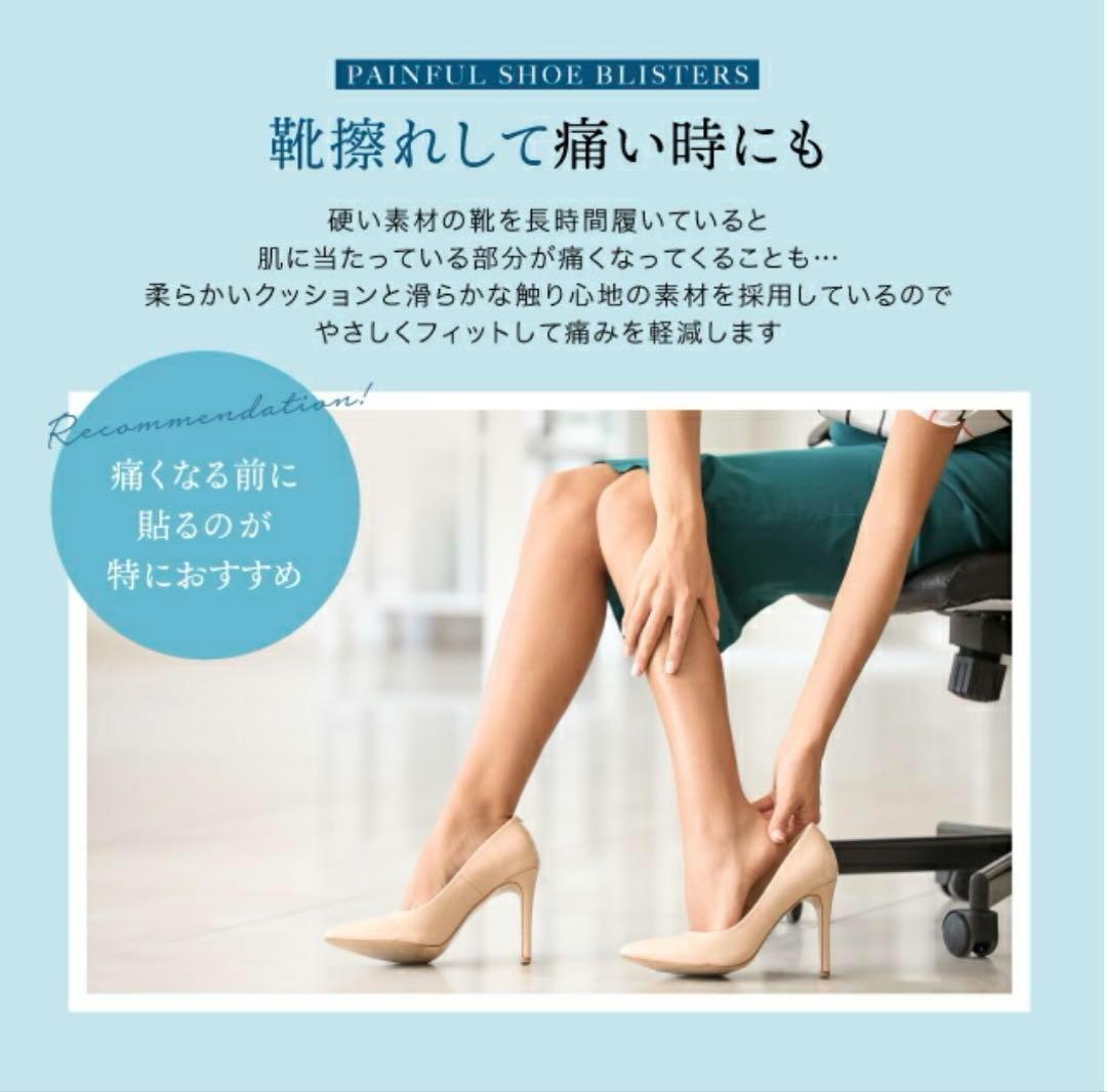 かかとと靴との摩擦を軽減し、痛い靴擦れを防ぎます。新しい靴を履くときや、革靴、ヒール、パンプスなど摩擦が起きやすい靴に最適です。