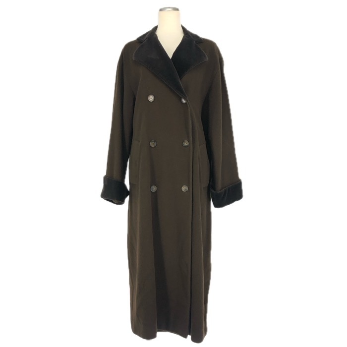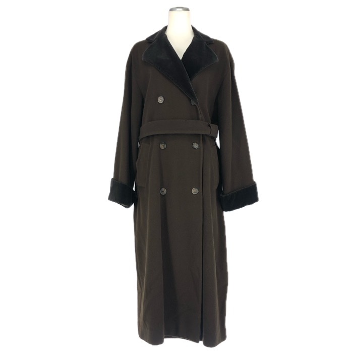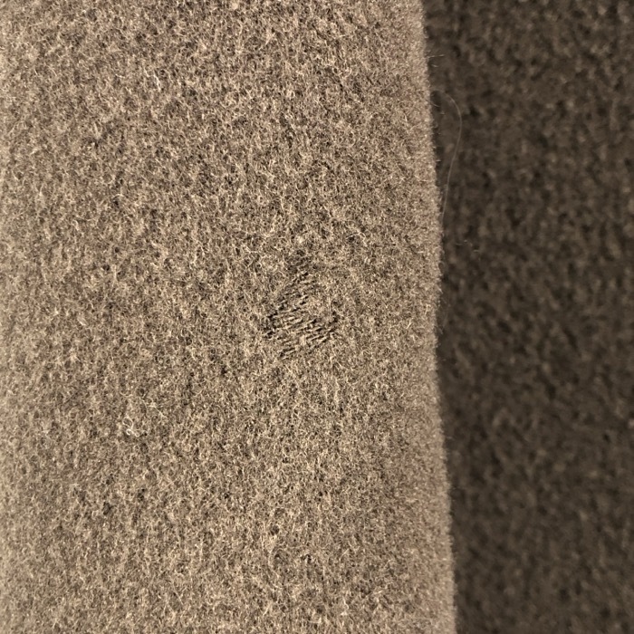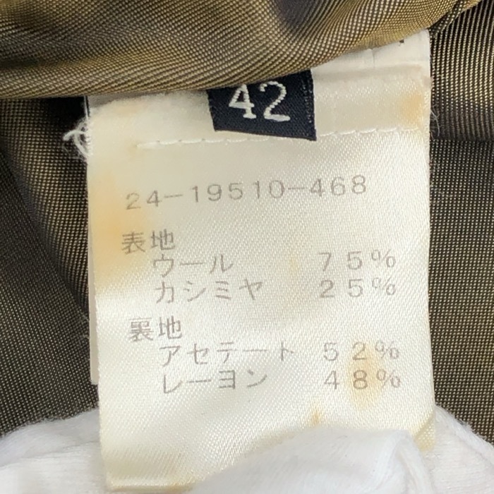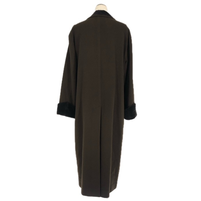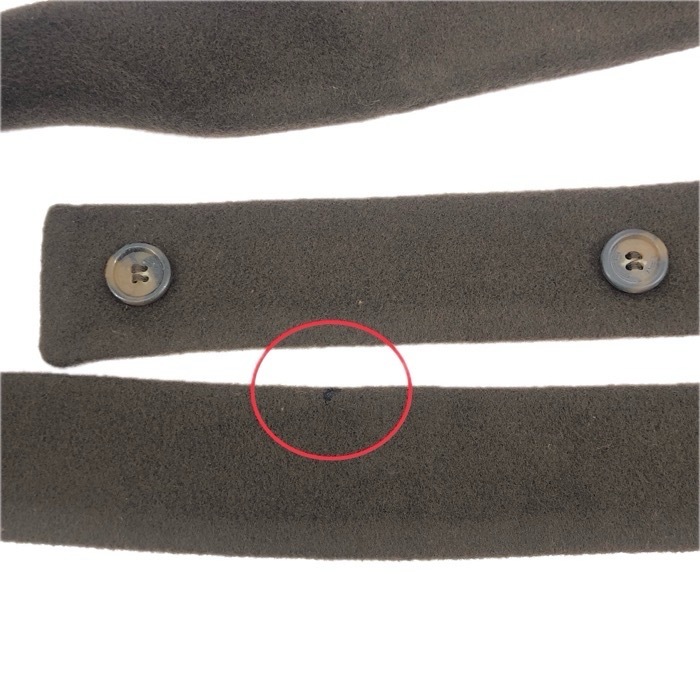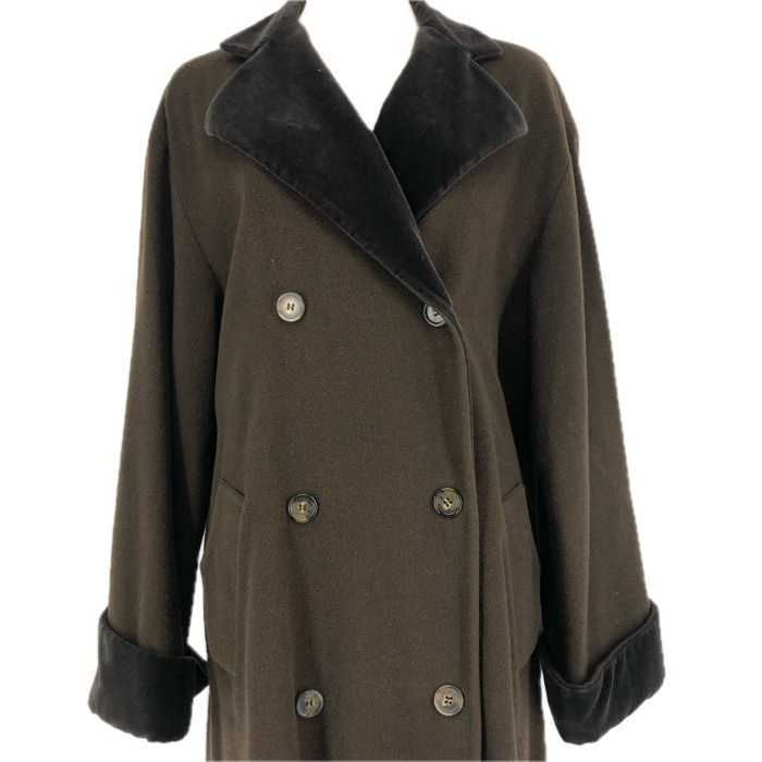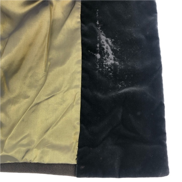 | 商品説明 | 【素材】表地:ウール75%カシミヤ25% 裏地:アセテート52%レーヨン48% 【季節】冬 【商品補足説明】※サイズは平置採寸です。 ※内側のボタンに欠品あり。 ポケットあり。 前身頃下部の生地が1cm程、薄くなっています。内側のベロア生地が一部薄くなっています。ベルトの生地が1か所薄くなっています。全体的に毛羽立ちあり。ブランドタグ辺りに0.1cm程の穴あり。 |
