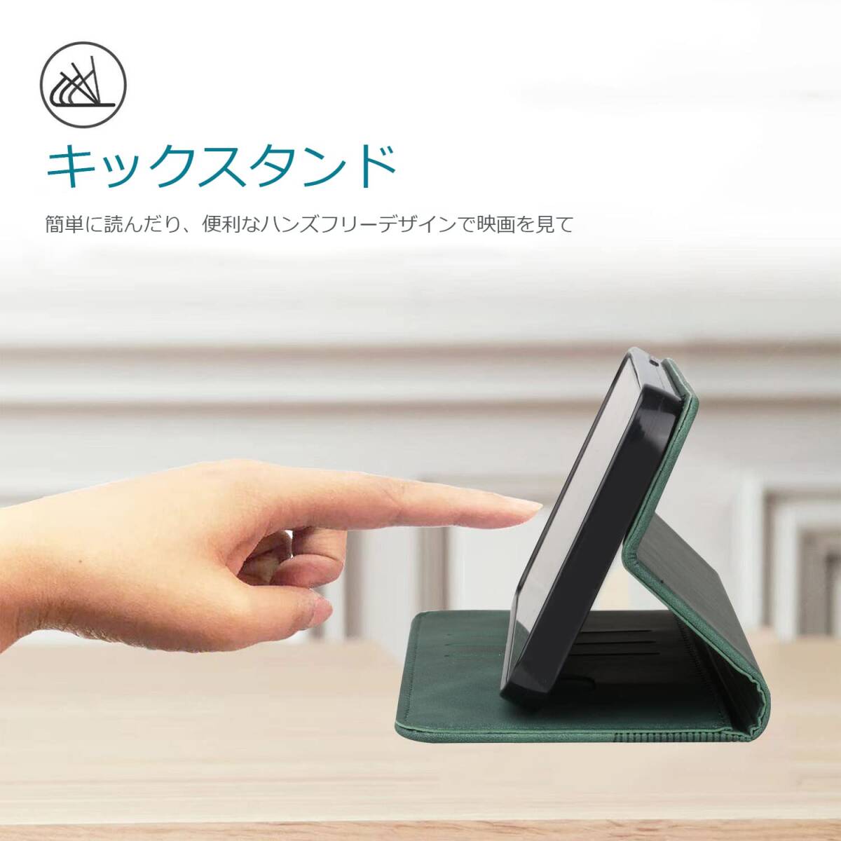 ケースに横置きスタンド機能が付いているので、手に持たず動画の視聴などを楽しむことができます。