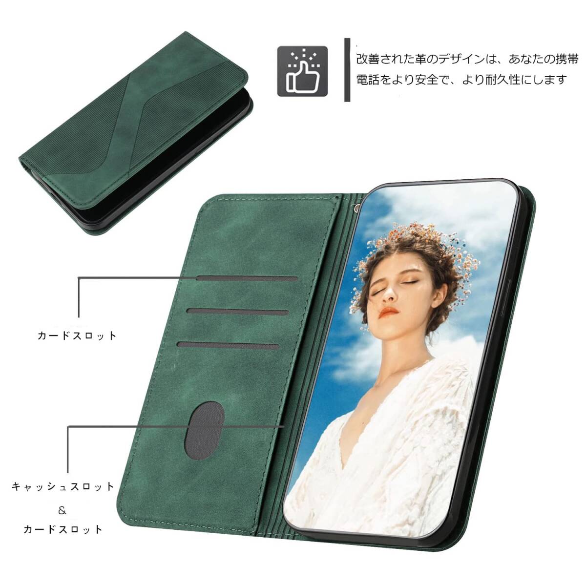本商品は高品質のPUレザーと柔らかいTPU素材を採用してケースが柔軟性がありますので装着脱着ときも携帯本体に傷からしっかり保護できます。
