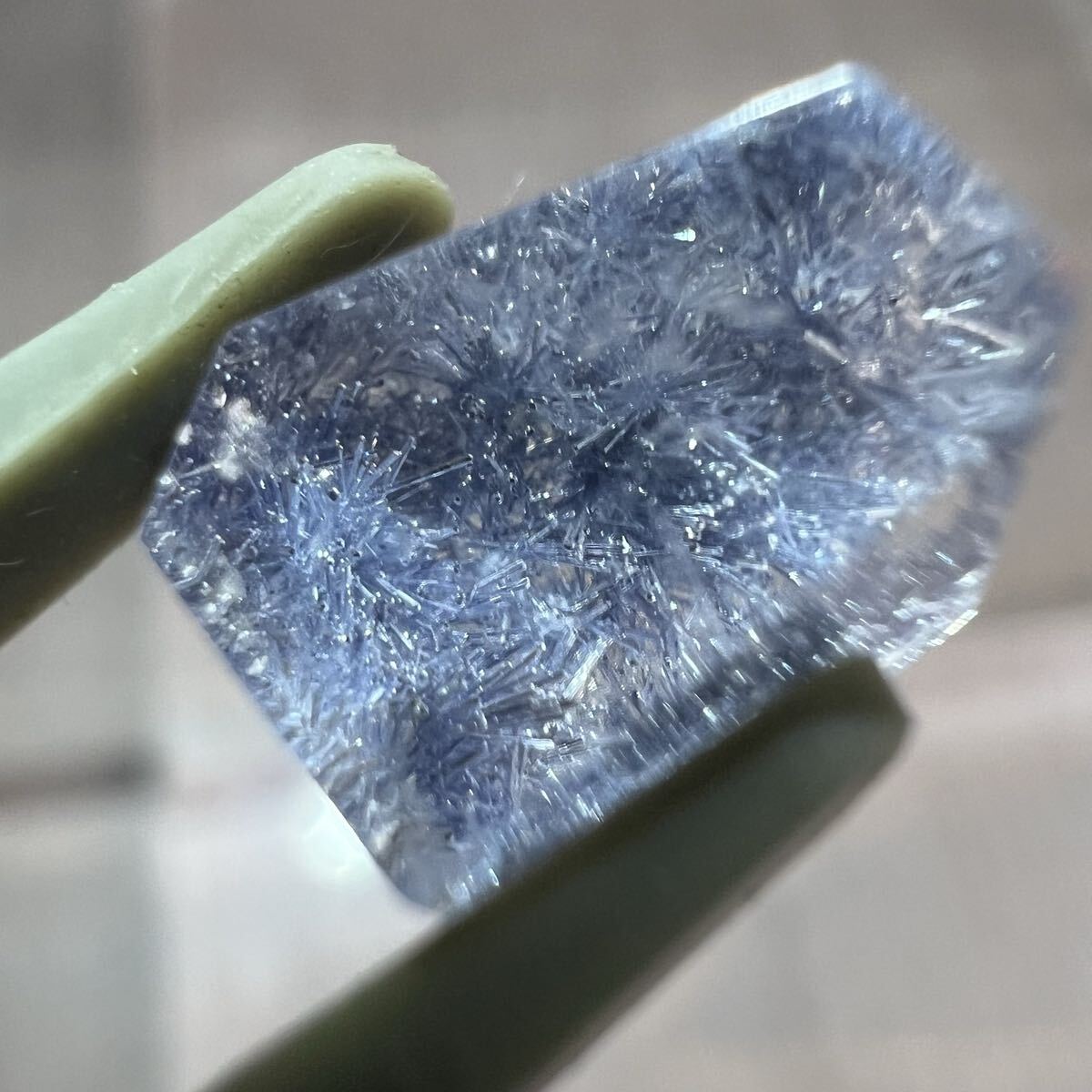 デュモルチェライトの原石自体は、もともとそこまで注目されてはおりませんでしたが、インクォーツしたことで一気に注目度が高まりものすごい高額で取引されていた石になります。現在はその勢いは落ち着いてきたかに思えますが、その中でも大きいもの、綺麗なものはさらに高騰を続けております。ブルーファントムという名称でも流通しております。