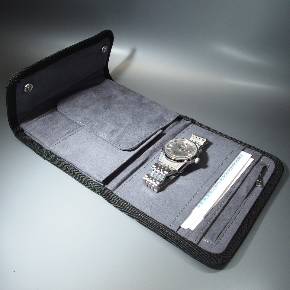 重厚感のあるケースですがすっきりとしたデザインで、年代や服装など関係なく