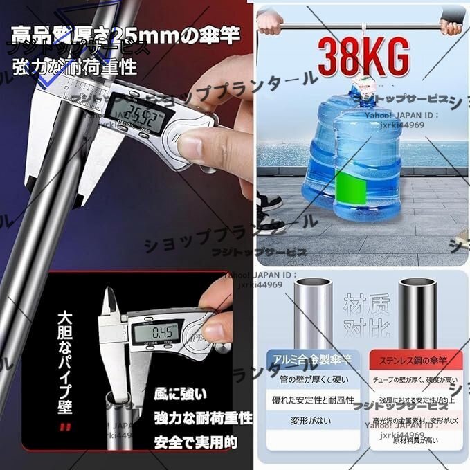 耐久性/通気性/防水性のパティオ傘:210T超高密度オックスフォード生地を採用して、また、表面はアルミニウムのコーティング/テフロンがありますので、1秒で冷える6層の保温により、体温を効果的に下げ、釣りをより楽しむことができます。日除けと風通しを兼ね備えたのパラソルです .