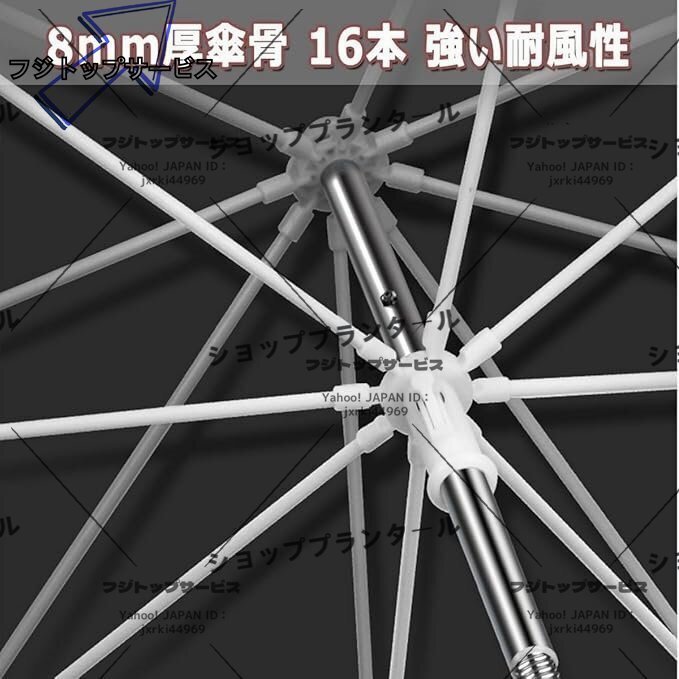 安定性と耐風性:釣り用パラソルは、強風の侵入を防ぎ、傘の転倒を防ぎ、強度と安定性を高める16本の太いグラスファイバーリブを採用してい