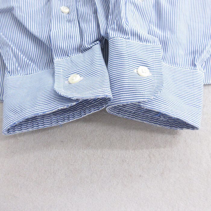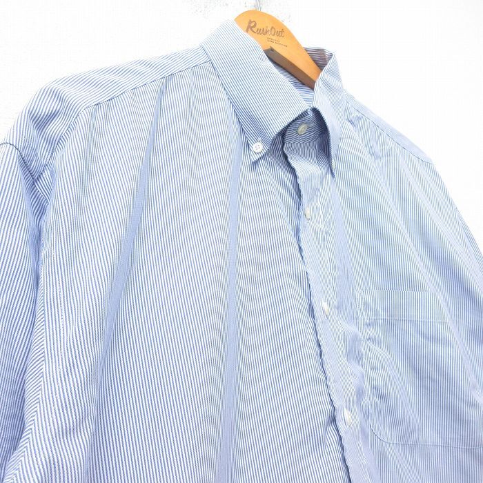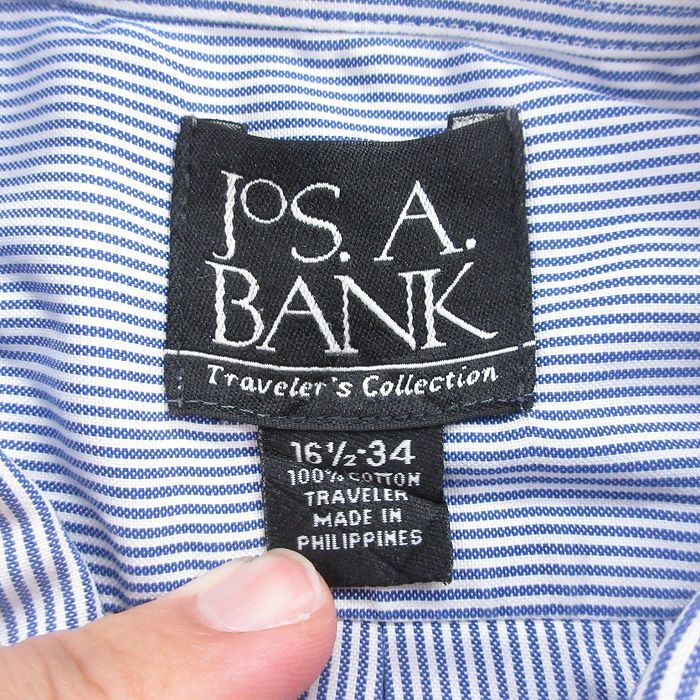 【商品名】 XL★古着 JOS A BANK 長袖 シャツ メンズ 大きいサイズ ロング丈 コットン ボタンダウン 紺他 ストライプ