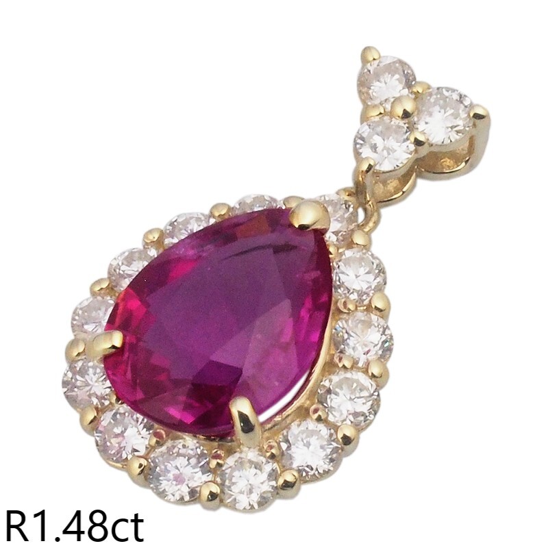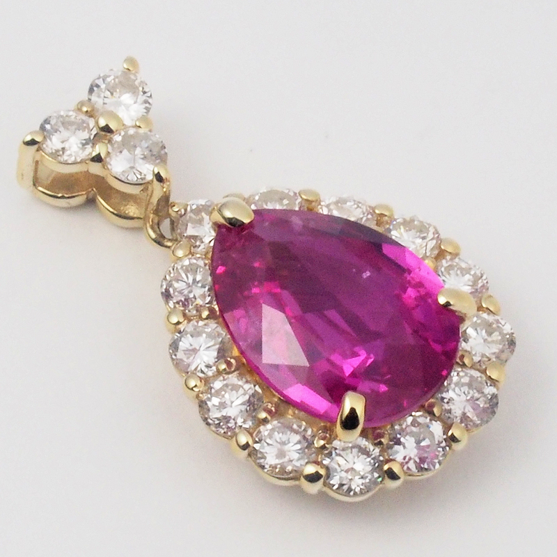 詳細:ノーブランド ノーヒート 非加熱ルビー/1.48ct ダイヤ/0.51ct K18YG ヘッド ペンダントトップ 鑑別書付き 仕上済