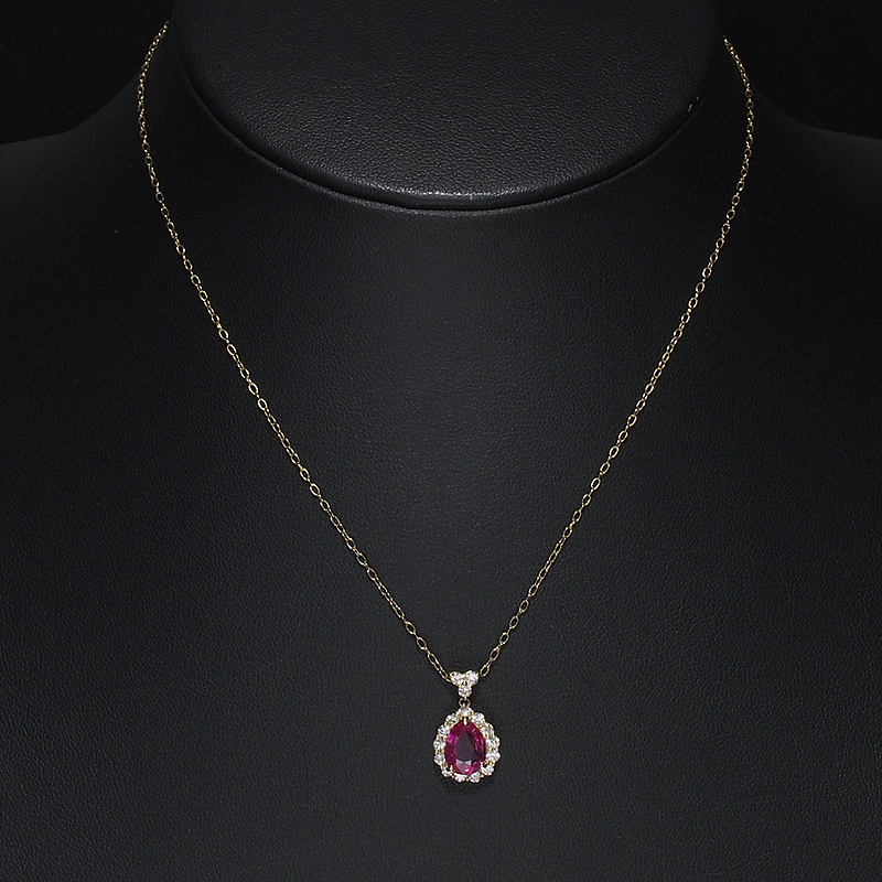 熱処理されていない上品な色味のルビーとダイヤの輝きが美しいペンダントトップです。お手持ちのチェーンと合わせてお使いいただけます。