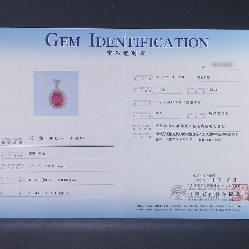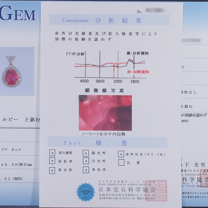 付属品:鑑別書・分析表(日本宝石科学協会)
