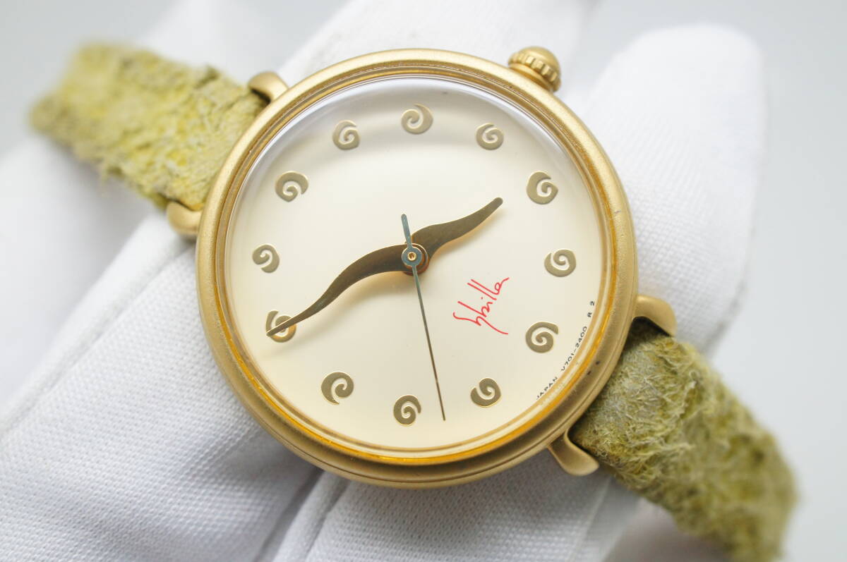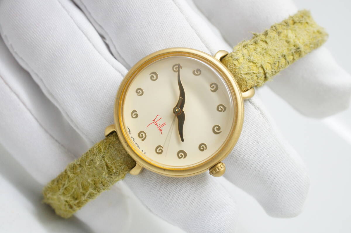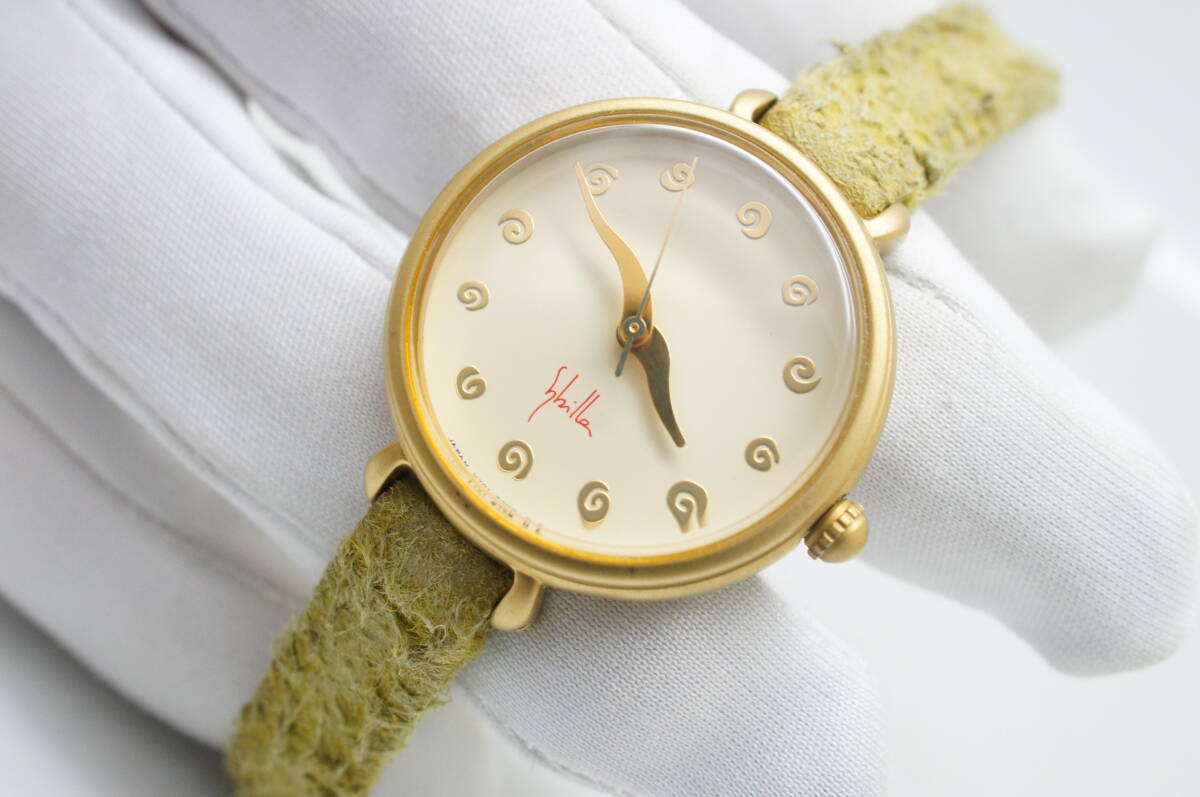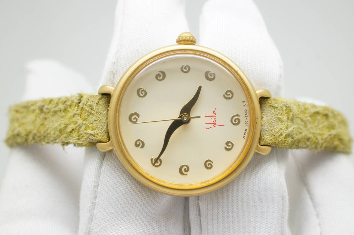 G79●作動良好 Sybilla シビラ アイボリー文字盤 ラウンドケース型 レディース腕時計 ゴールド金 お洒落 クォーツ