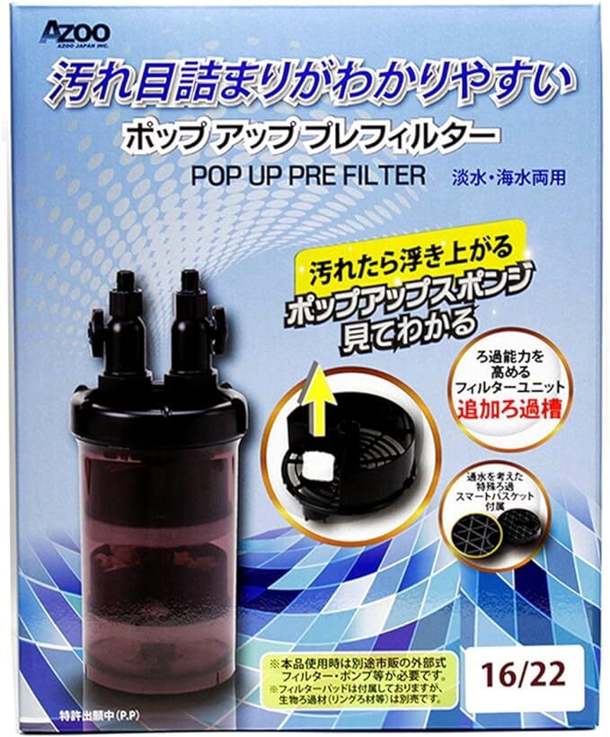 送料無料 アズー (AZOO) ポップアップ プレフィルター  ホース径16/22用       エーハイムサブフィルターと比べて