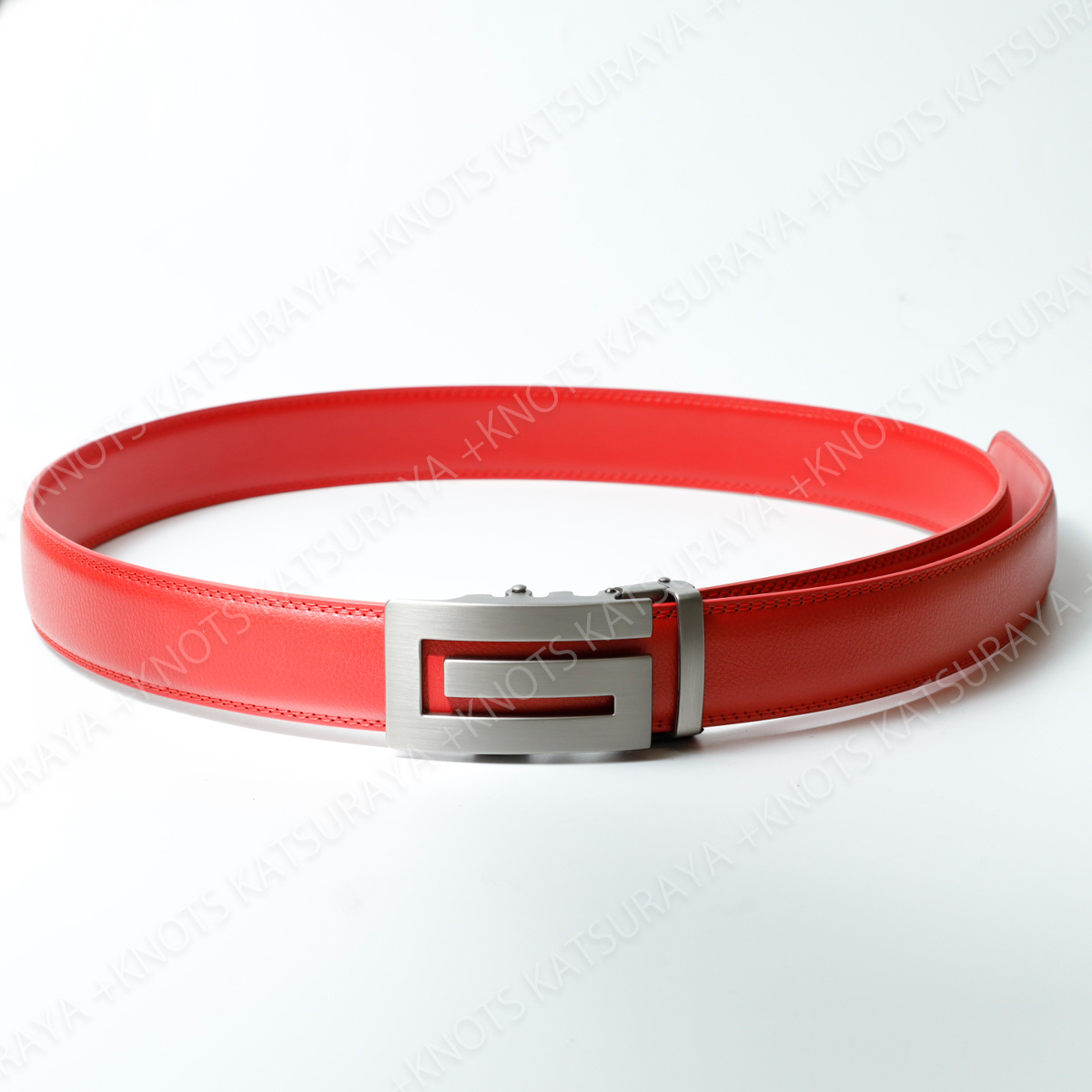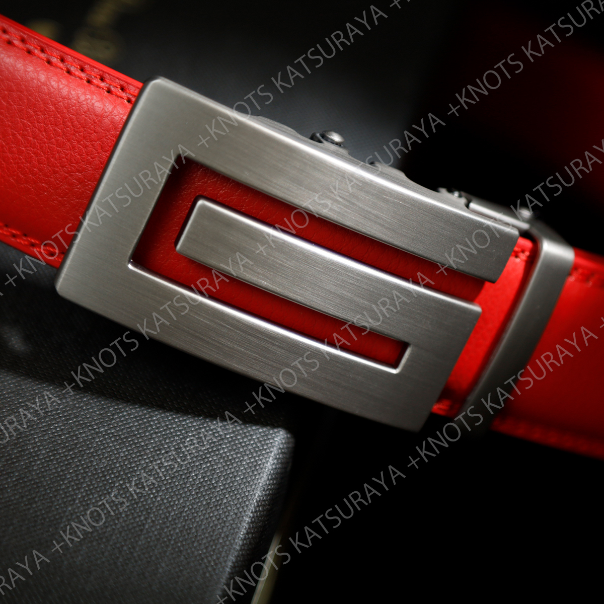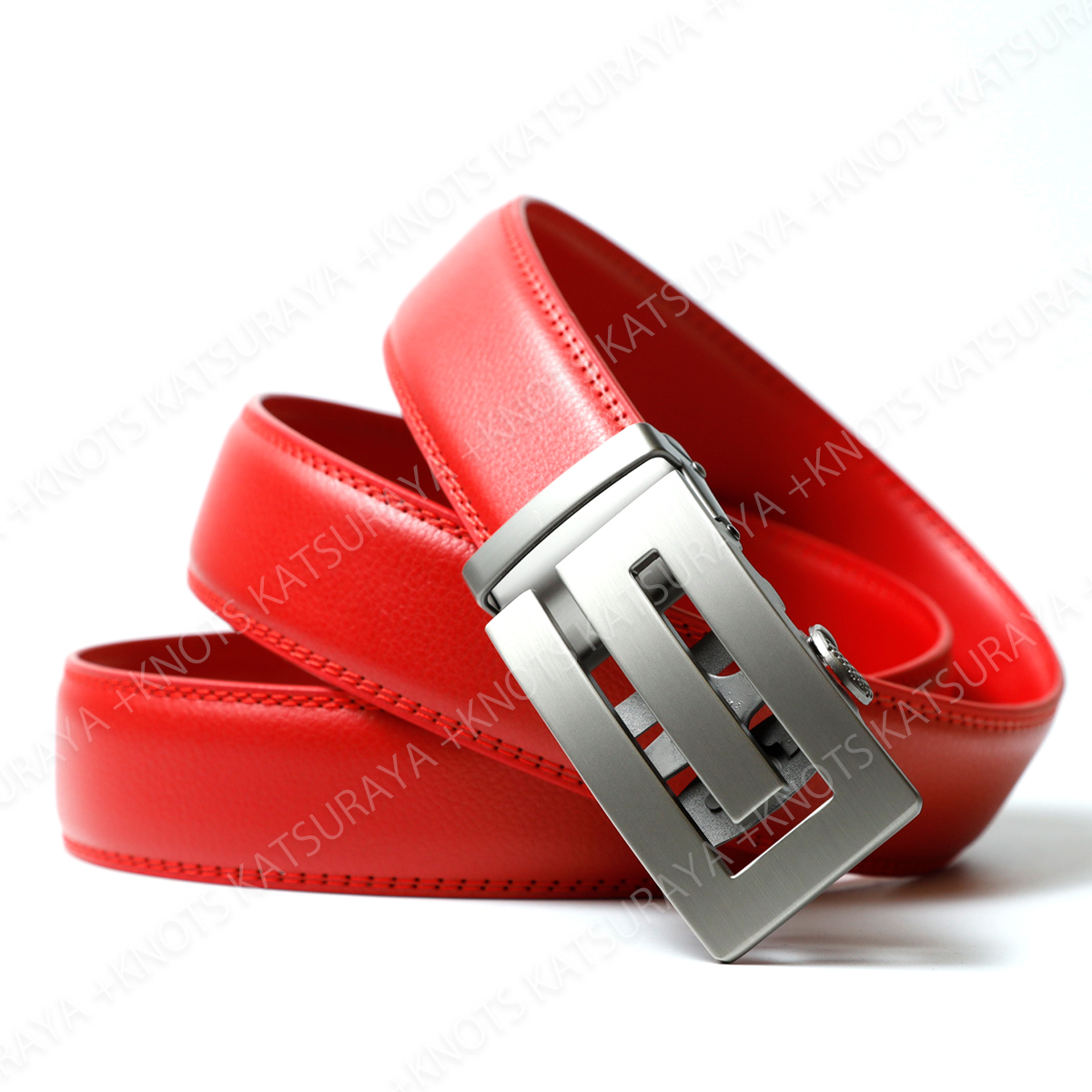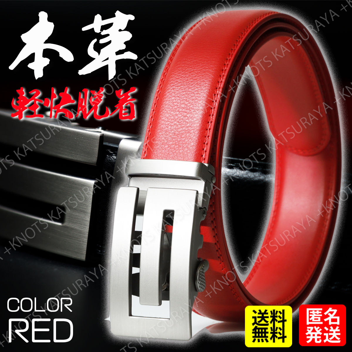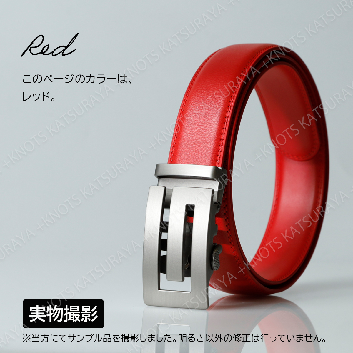 本革 オートロック メンズ ベルト★レッド赤★穴無し自動 レザー カジュアル ジーンズ デニム 紳士 通勤 ビジネス ゴルフ スーツa330