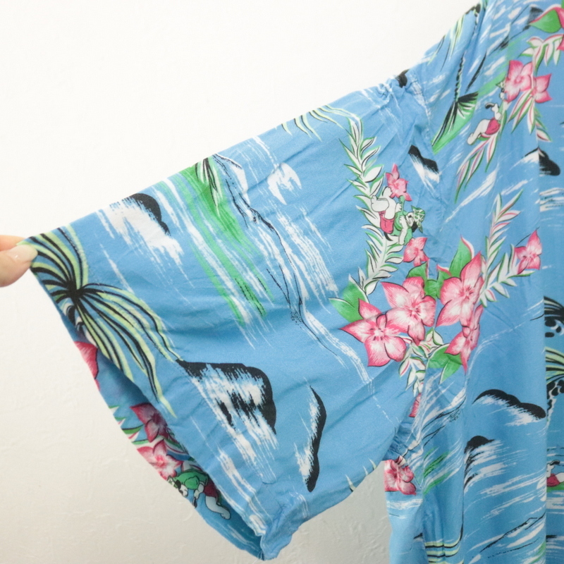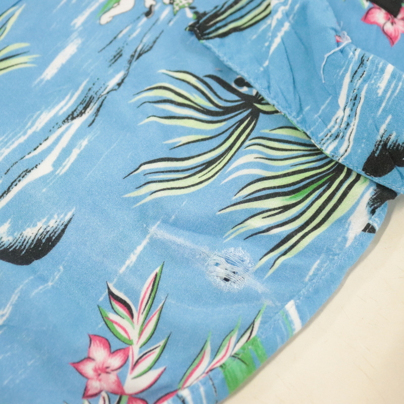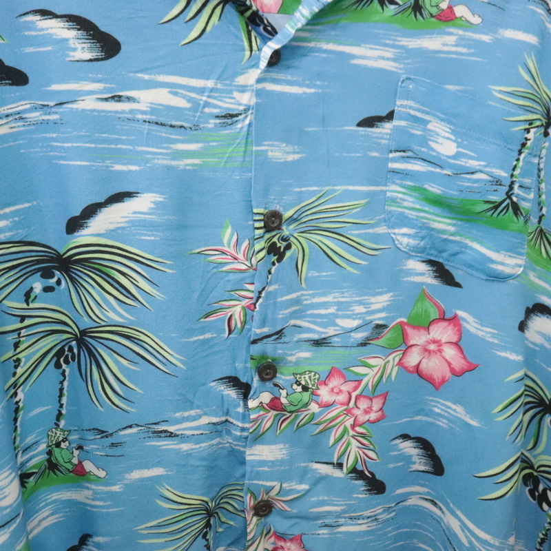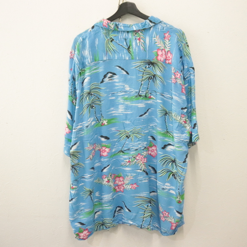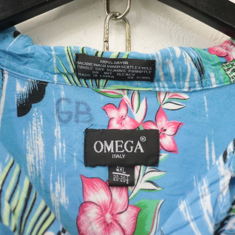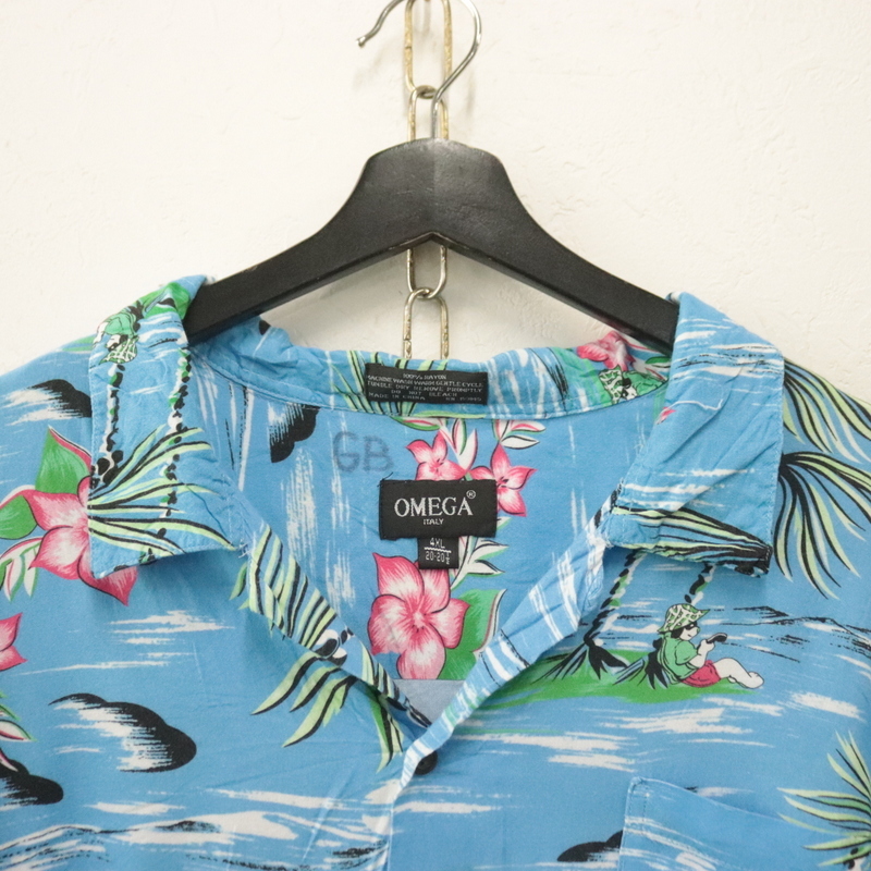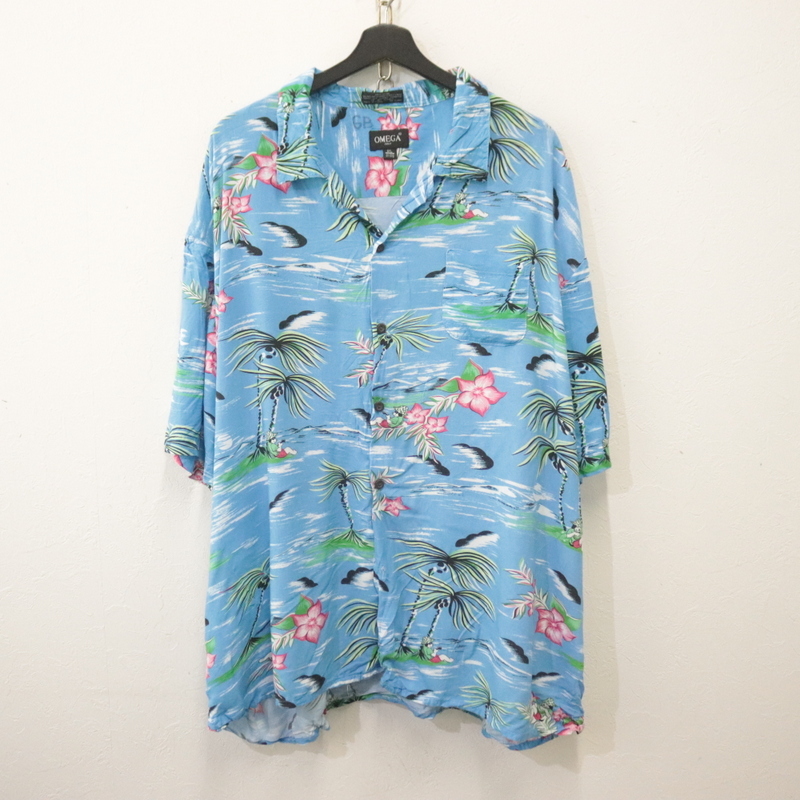 商品名 h783 2000年代製 OMEGA 半袖アロハシャツ■00s 表記4XLサイズ ブルー オープンカラー 開襟 レーヨン アニマル アメカジ 古着 激安 希少 90s