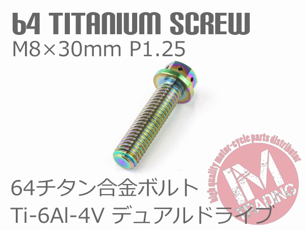 64チタン合金ボルト デュアルドライブ M8×30mm P1.25 ゆうパケット対応 焼き色有り Ti-6Al-4V