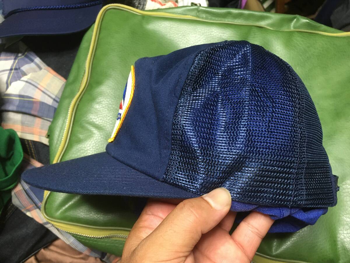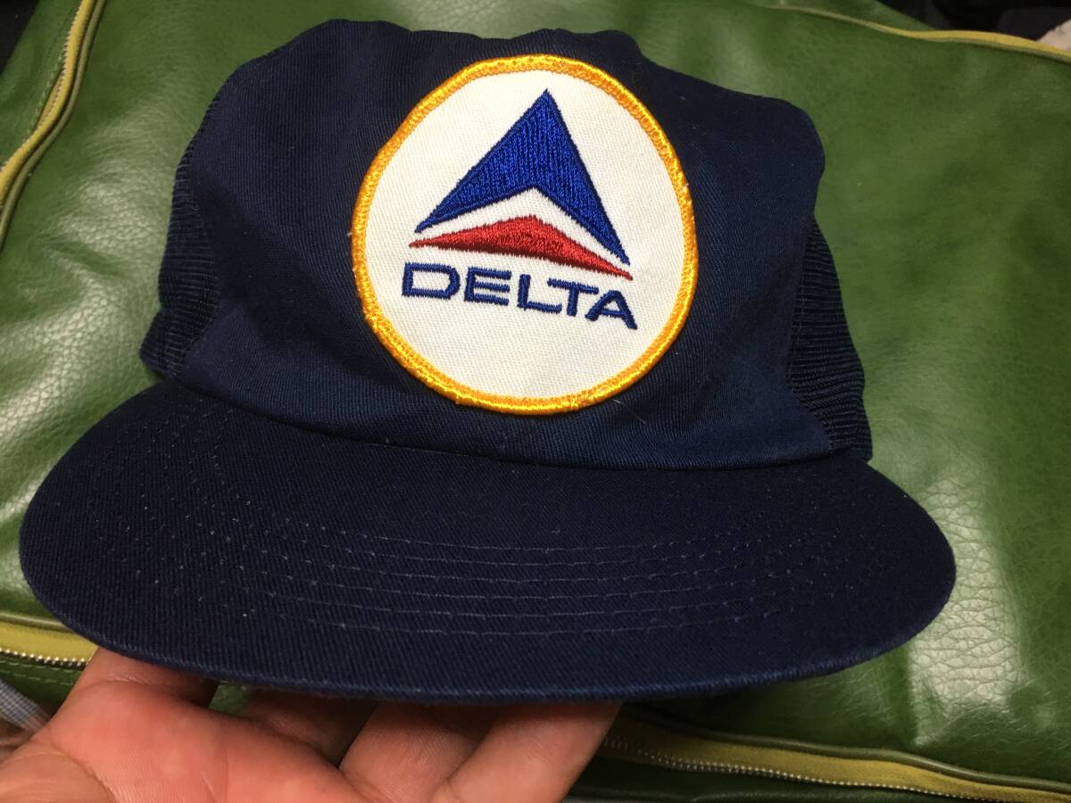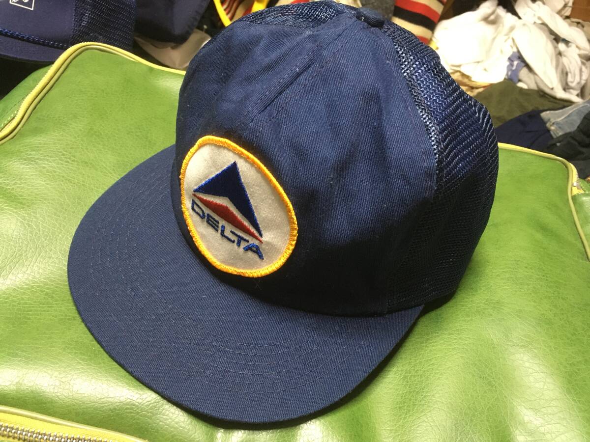 2508ビンテージUSAアメリカ製K-PRODUCTSデルタDELTA航空ワッペン付メッシュCAPキャップ帽子トラッカー野球帽ベースボールNAVY USED古着OLD