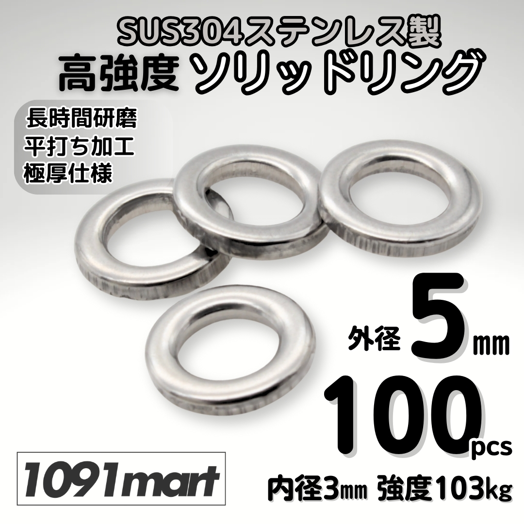平打ち 強力 ソリッドリング 5㎜ 100個セット 最強素材 SUS304ステンレス製 ソルト対応品 長時間研磨 極厚仕様 ジギング【1091mart】