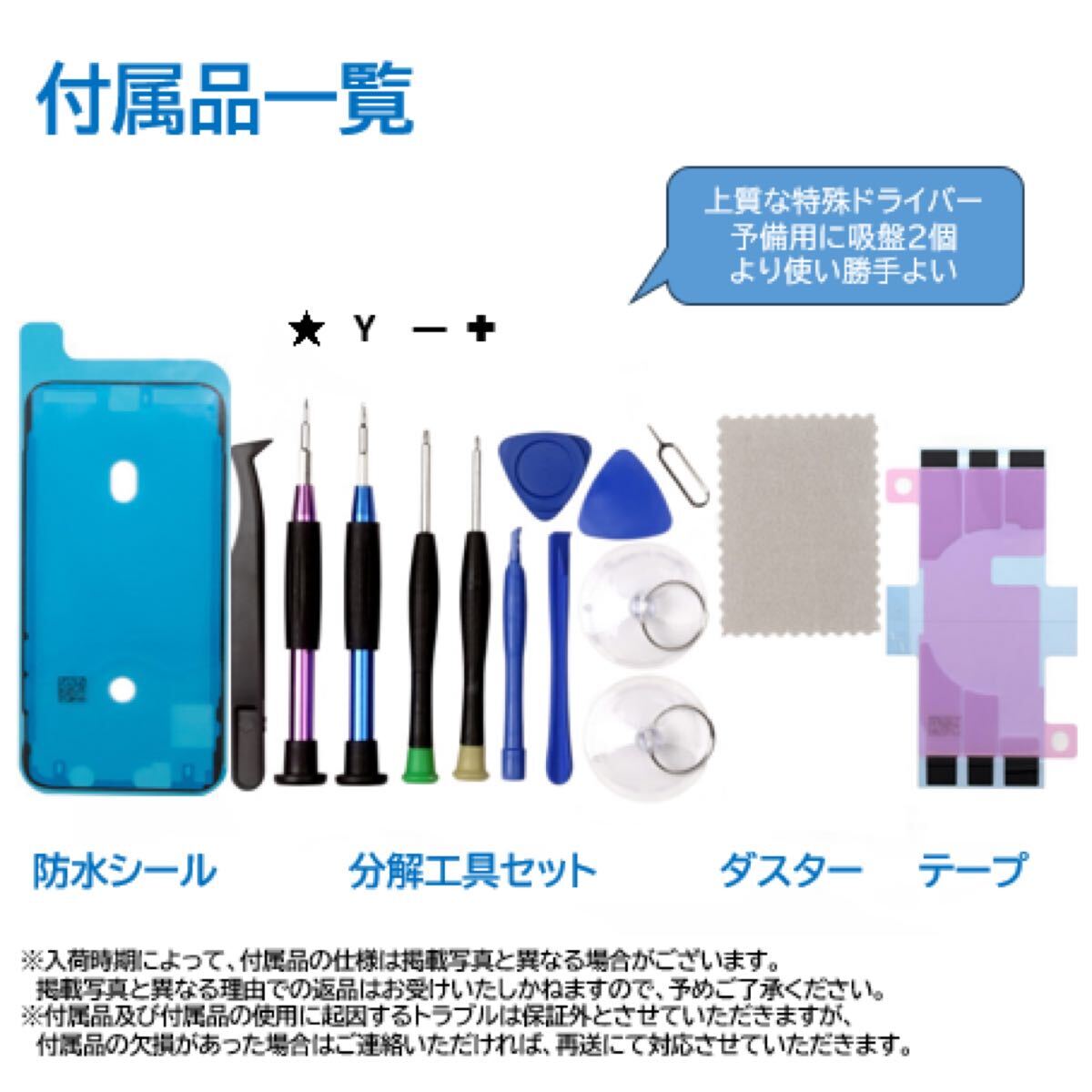 分解工具や両面テープ・防水シールも付属しており、古くなったバッテリーをご自身で交換したい方向けのリペアキットです。